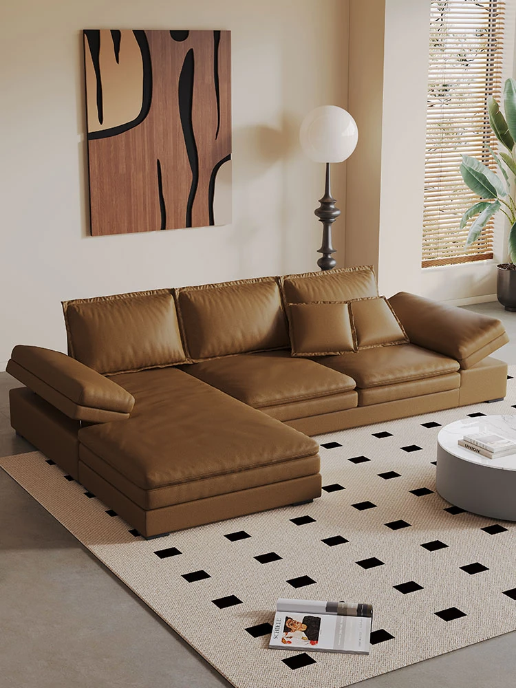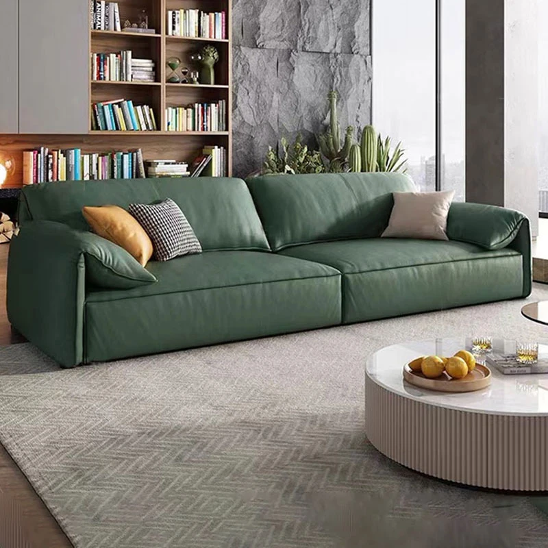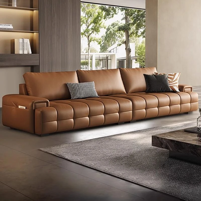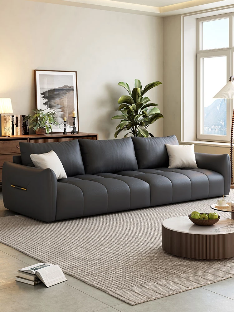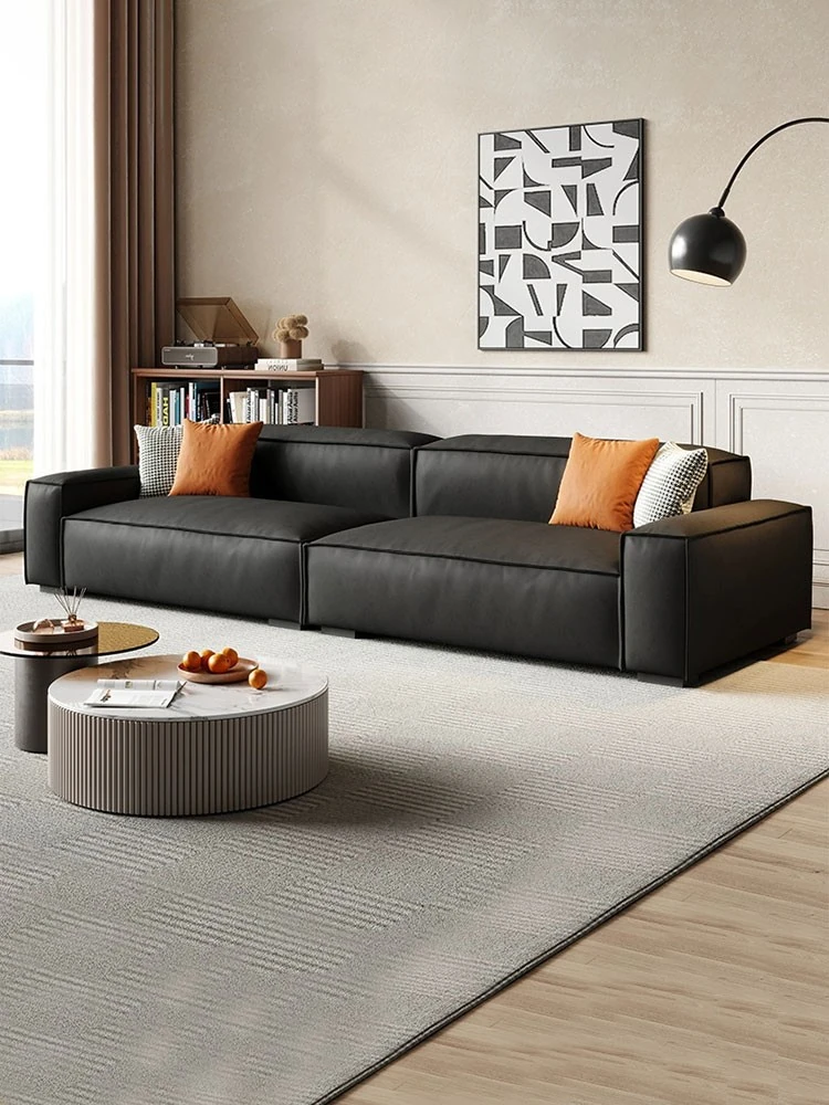 イタリアンミニマリストリビング用 本革オイルワックスソファ - シンプルで洗練されたデザイン、快適な座り心地を実現!おしゃれな空間を演出する上質な家具です。