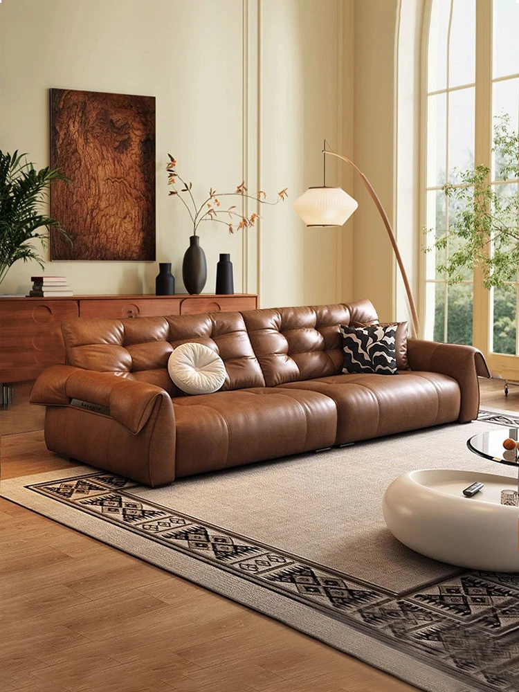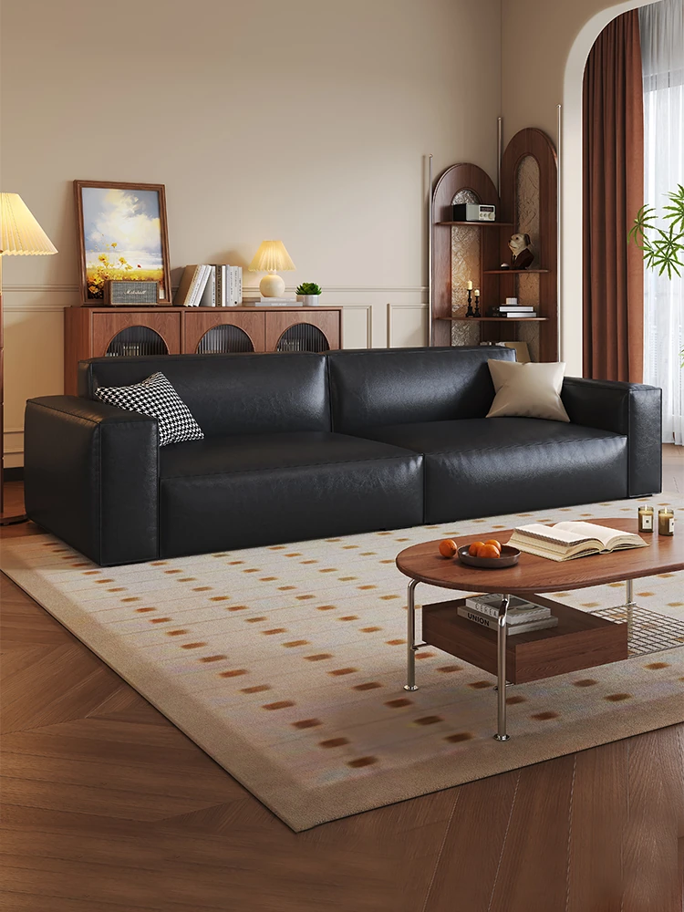 イタリアンミニマリズム豆腐ブロック 本革ソファ モダンシンプル 軽やかなラグジュアリー コンパクトな空間にも最適 ヴィンテージオイルワックス牛革使用ソファ