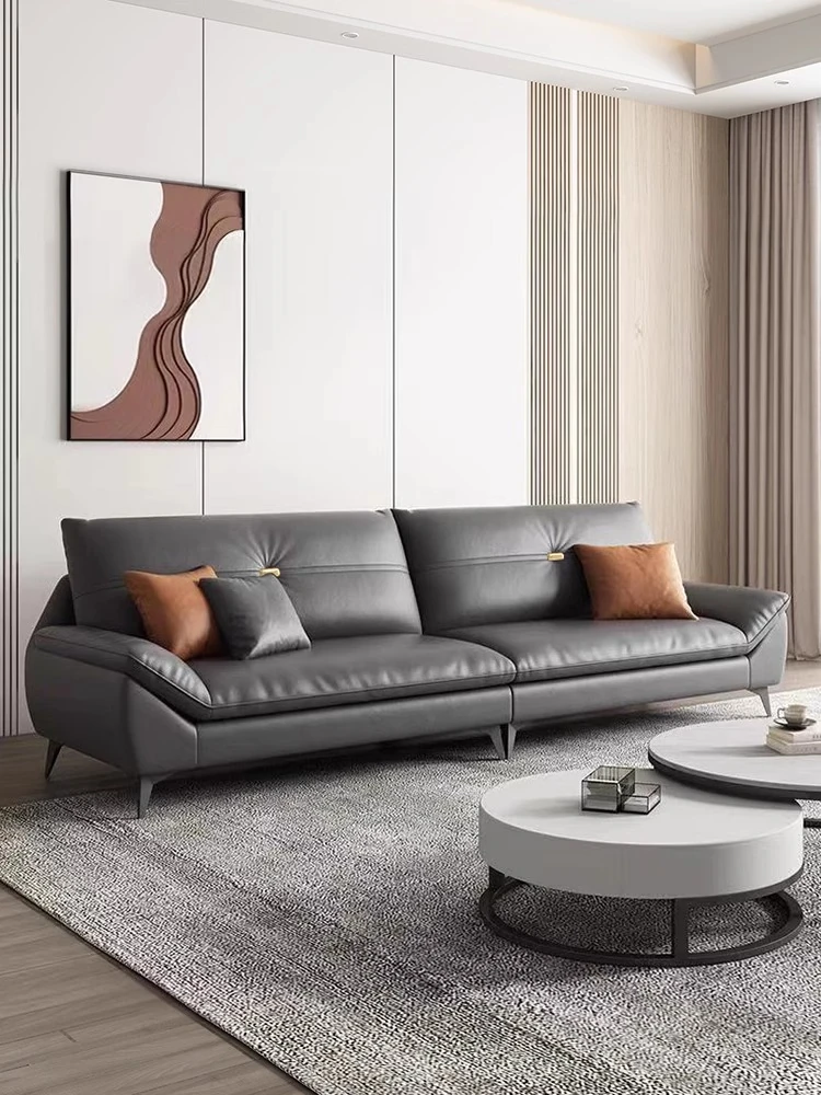 イタリアンミニマリズムの本革ソファ|現代的でシンプルなリビング向け|コンパクトな3人掛け|テクノロジー布と牛革の組み合わせで贅沢な座り心地を実現!