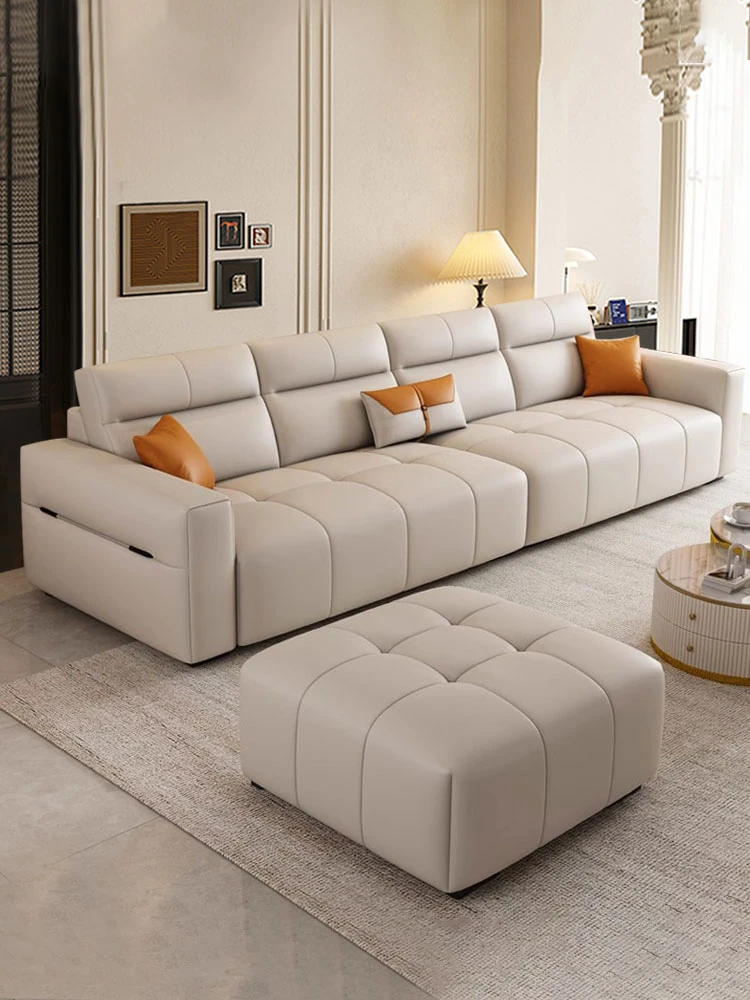 モダンでシンプルなクリーム風デザイン!2024年新作リビング用猫用爪研ぎレザーソファ、直排型・軽奢華の三人掛け・四人掛けラテックスソファ。快適な座り心地で、あなたのリビングを特別な空間に!