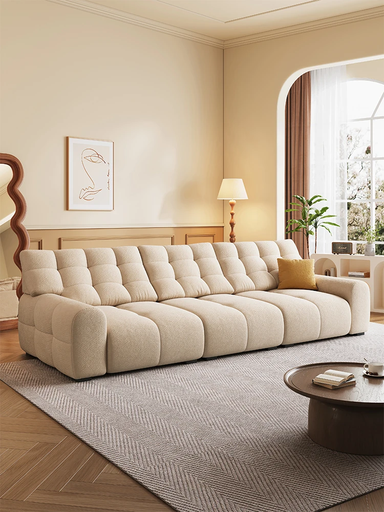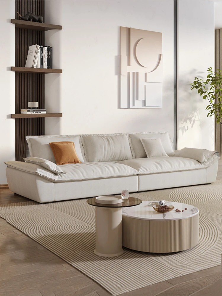モダンイタリアンテクノロジー布製ボートソファ、リビングルームにぴったりのライトラグジュアリー、小型住宅向け直置きネット人気クリーム風ソファ!快適さとスタイルを両立させた一品です。