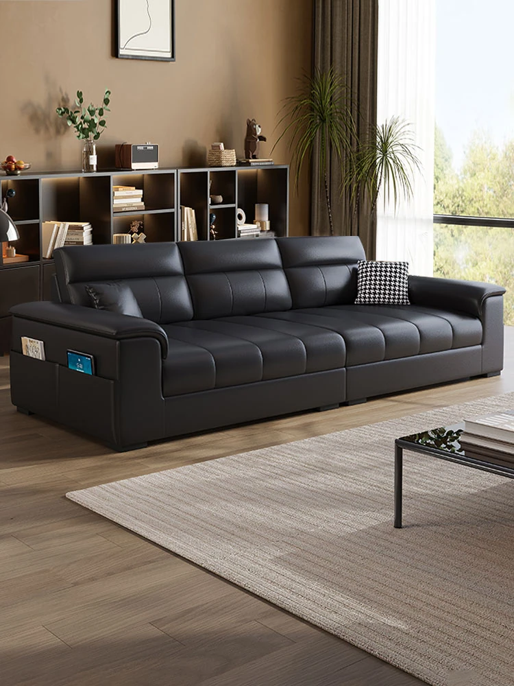 イタリアンミニマルデザインの3人掛けレザーソファ - スタイリッシュで耐久性抜群、リビングルームに最適な座り心地を提供します!
