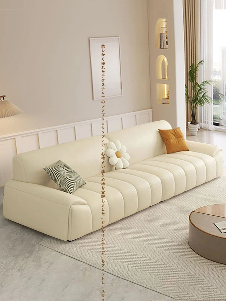 イタリアンミニマリストクリーム風ソファ|現代的なシンプルデザイン|リビングルームに最適|小さなスペースにも対応|高級感あふれる直線的な布張りソファで、あなたのインテリアを格上げ!