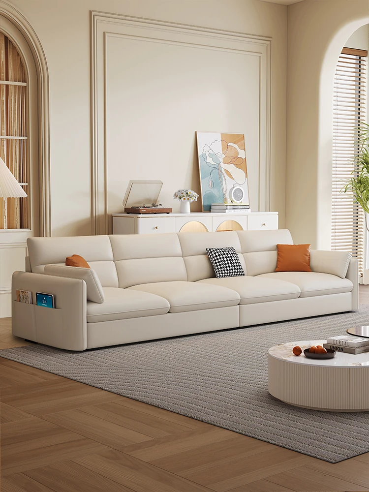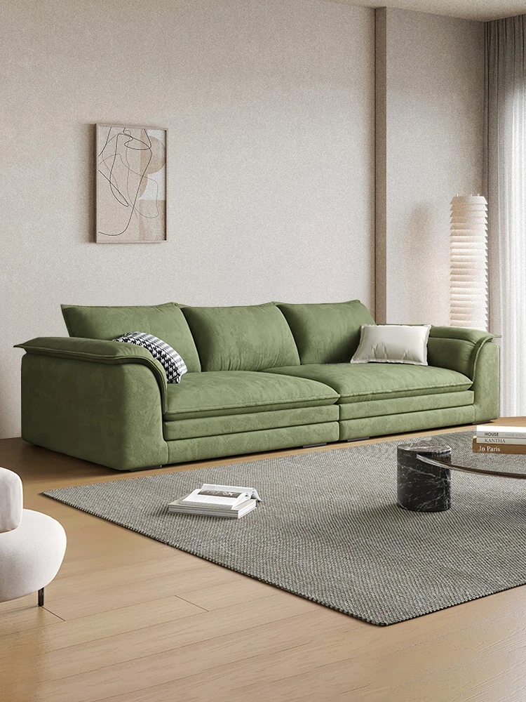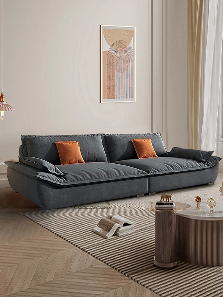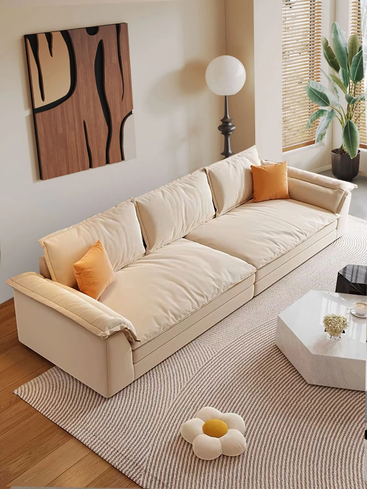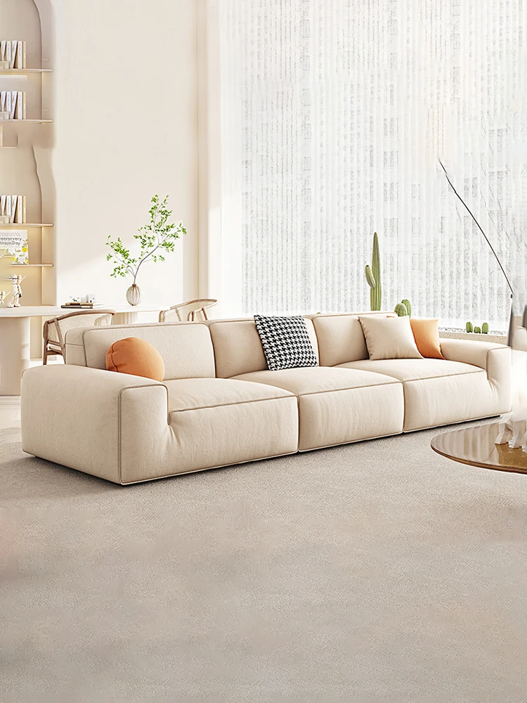 "Ultra-Modern Italian Minimalist Technology Fabric Sofa for Spacious Living Rooms - Deep-Seating, Straight Design, Perfect for Home Comfort with Latex Cushions"