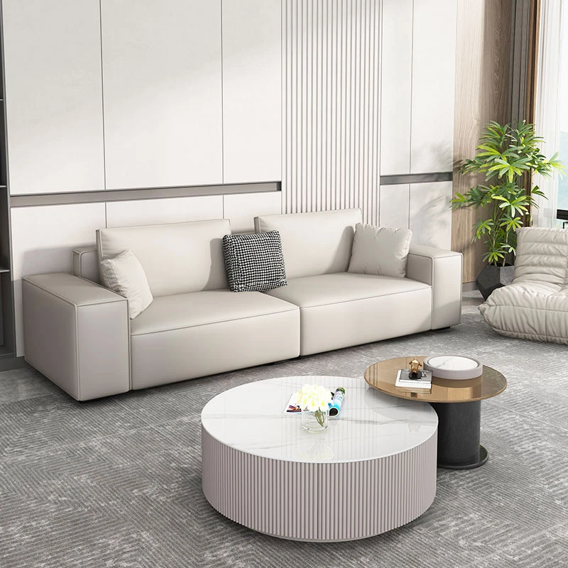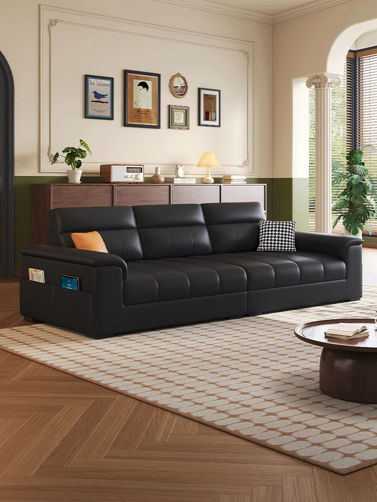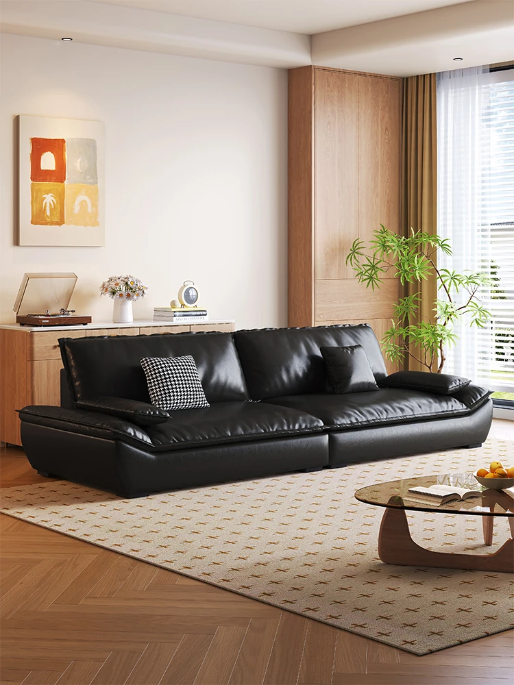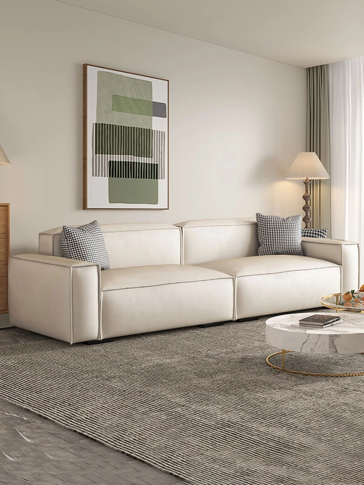 Italian Minimalist Leather Sofa - Premium Oil-Wax Finish for Your Living Room, Comfortable and Stylish Home Furniture