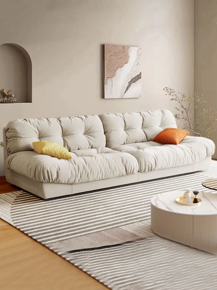 Elegant Italian Style Lightweight Sofa with Modern Design – Perfect for Small Living Rooms, Featuring Tofu-Block Shape and Creamy Aesthetic, Ideal for Contemporary Living Spaces.