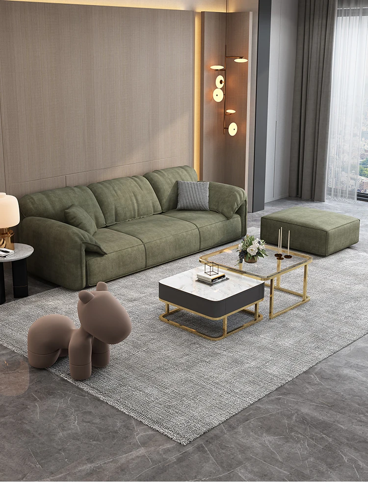 Modern Minimalist Small Apartment Living Room Sofa - Nordic Light Luxury Suede Elephant Ear Latex Fabric Sofa Set for Cozy Spaces