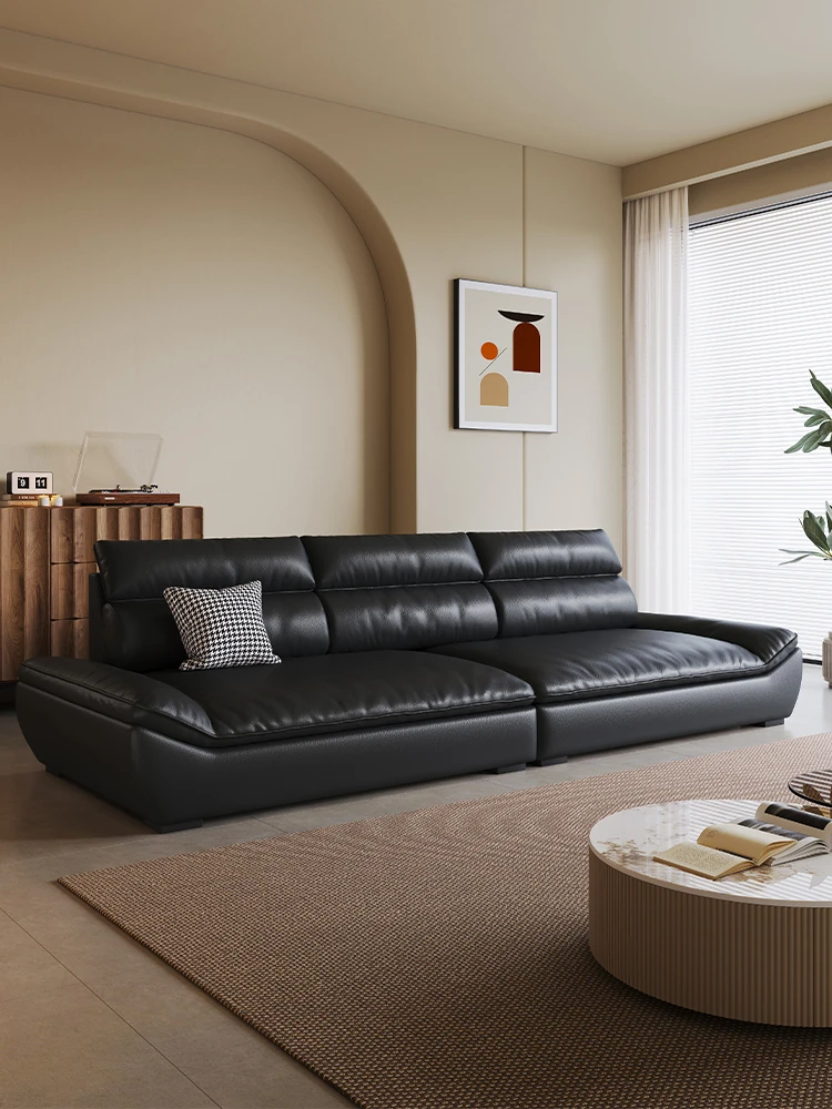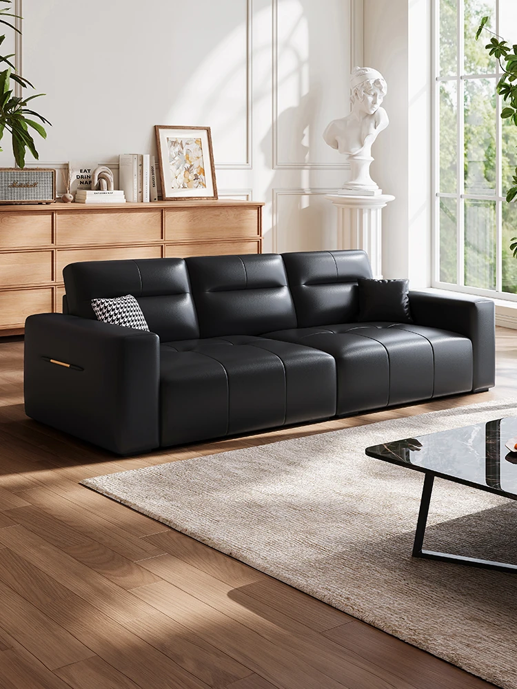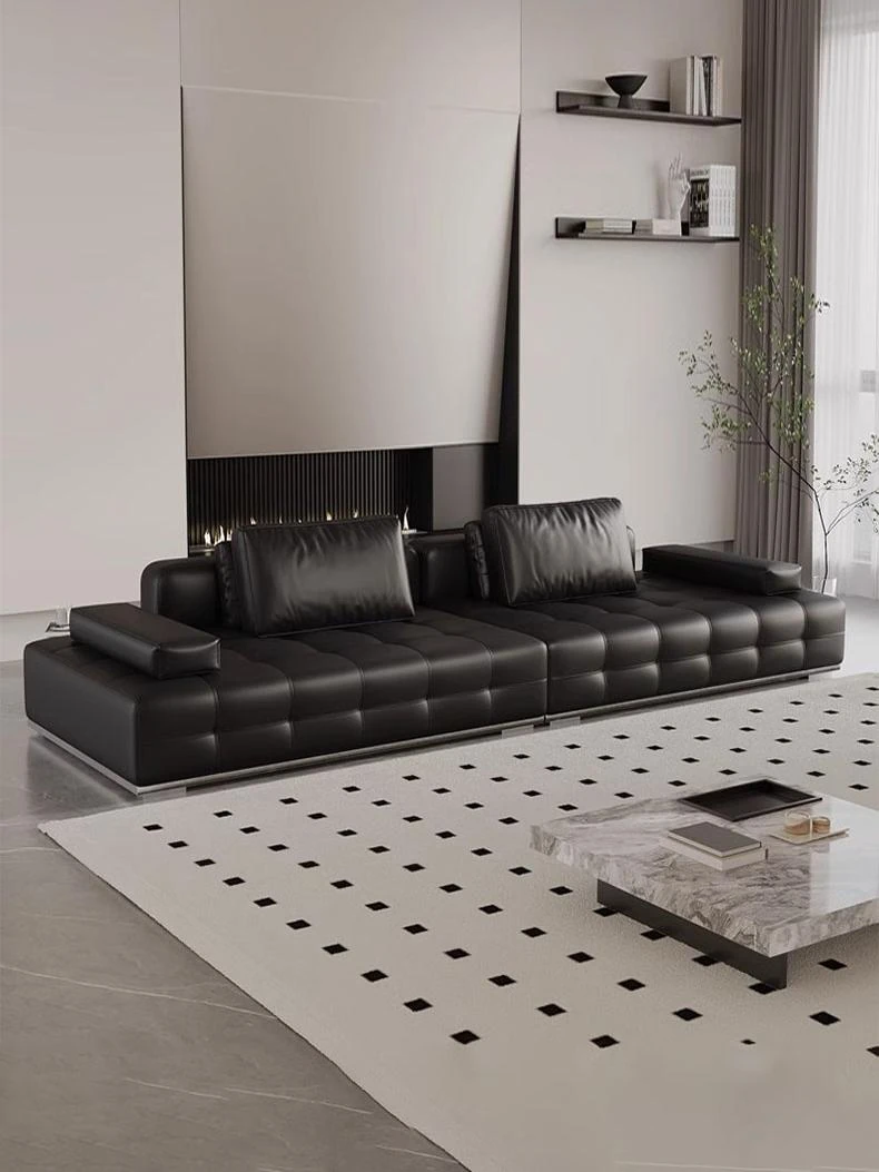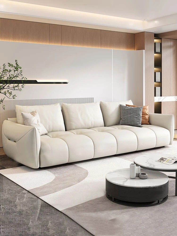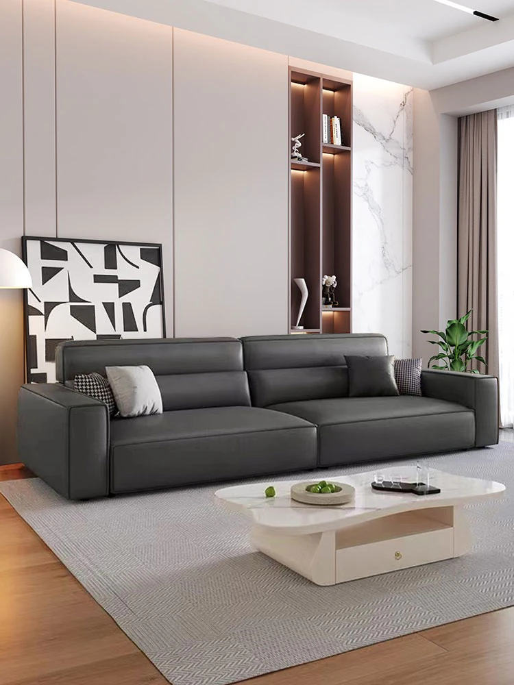 Italian Minimalist 3-Seater Straight Modular Genuine Leather Sofa - Stylish Comfort for Modern Living Rooms
