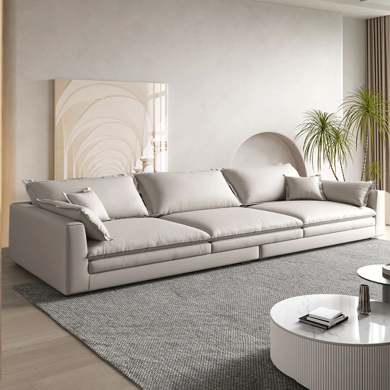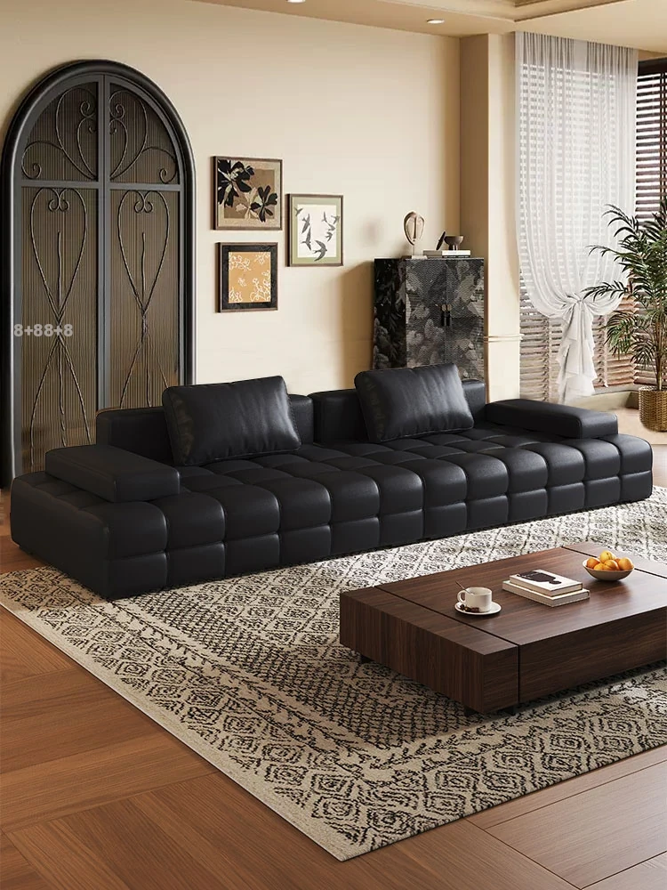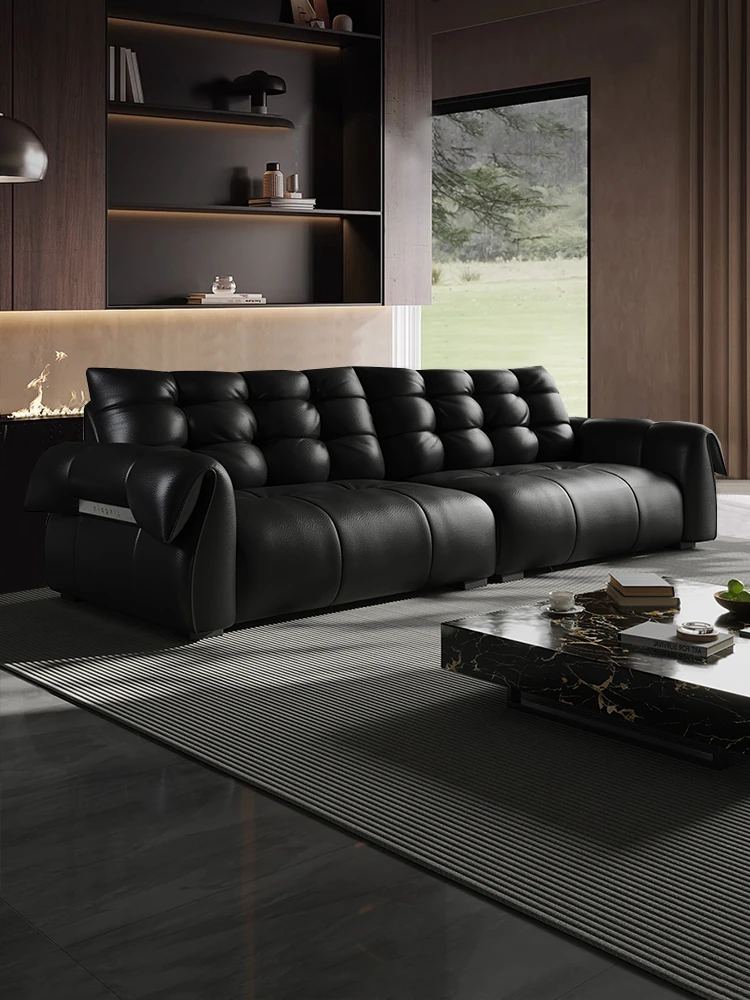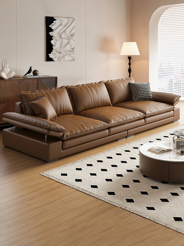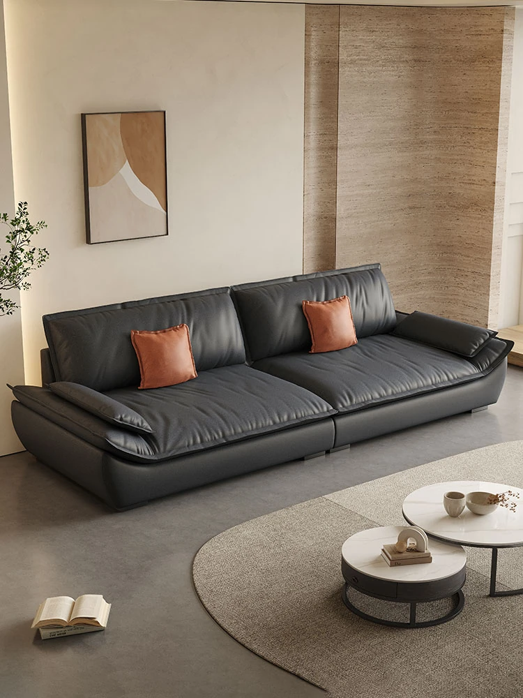 Italian Minimalist 3-Seater Straight Modular Genuine Leather Sofa - Stylish Comfort for Modern Living Rooms