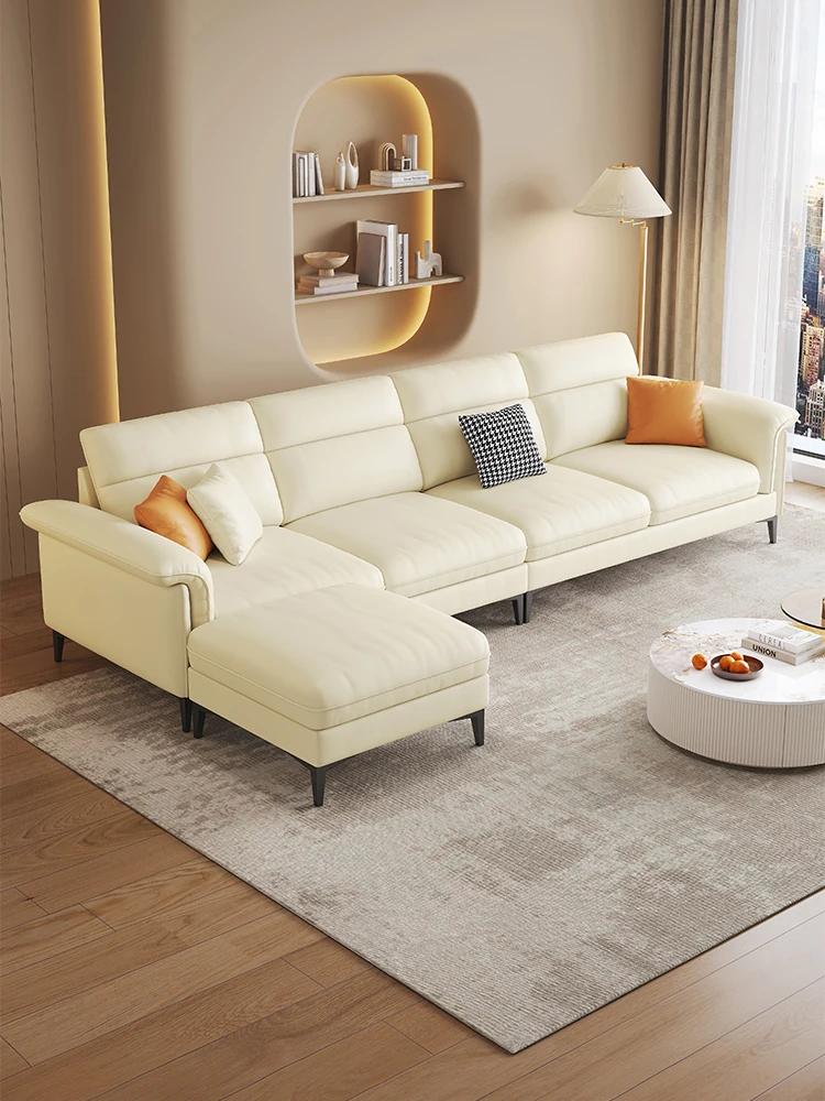 Luxurious French Cream Leather Sofa for Small Living Rooms - Modern Minimalist Nordic Design with Stylish Technology Fabric - Perfect for Cozy Homes