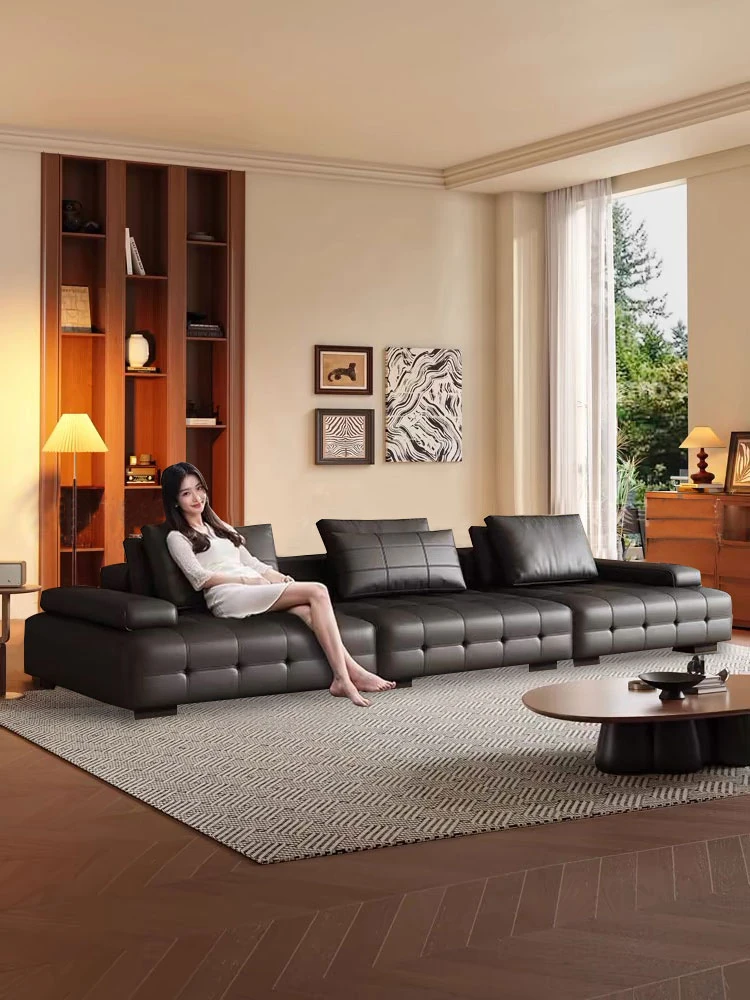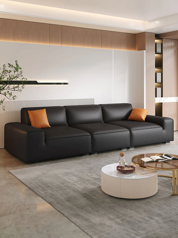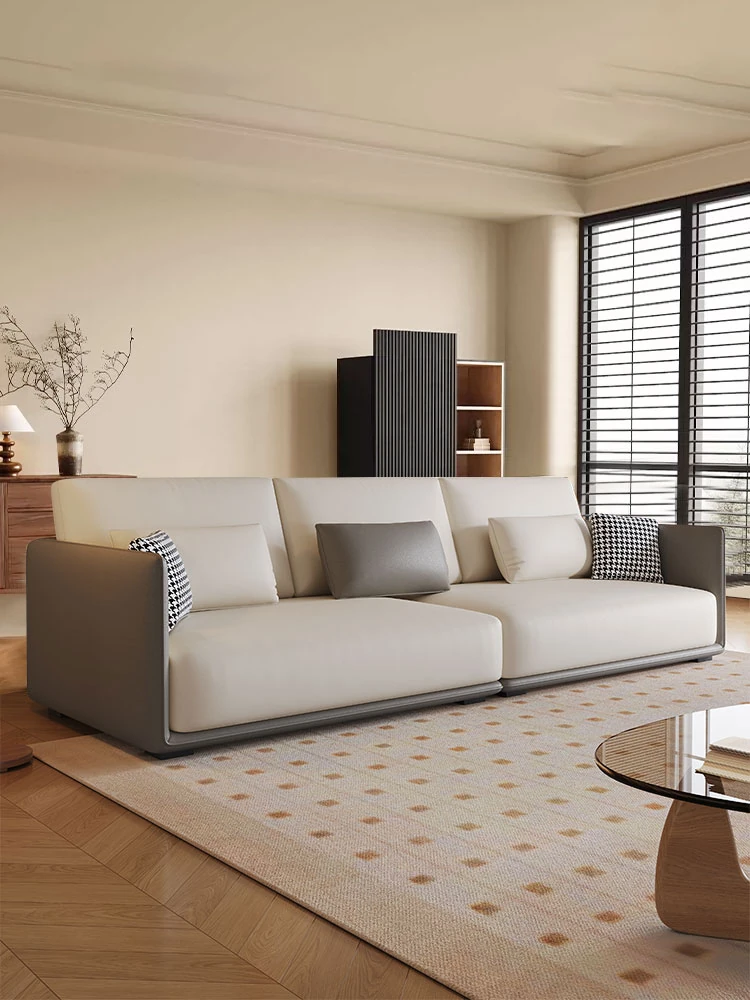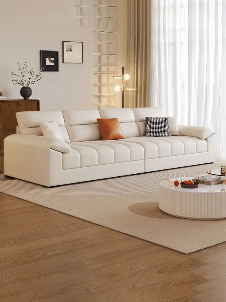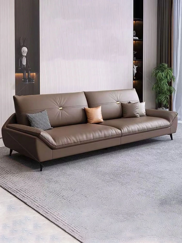 Sleek Italian Minimalist Genuine Leather Sofa – Modern Light Luxury Cowhide Cat Paw Design for Living Room, New Arrival 2024