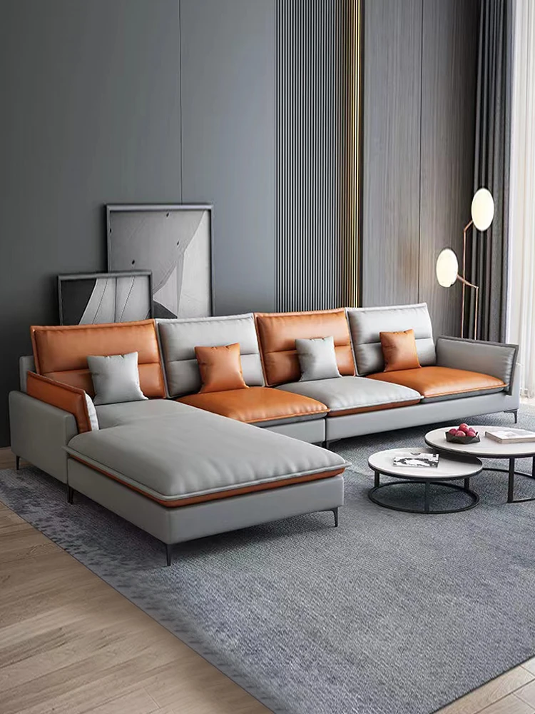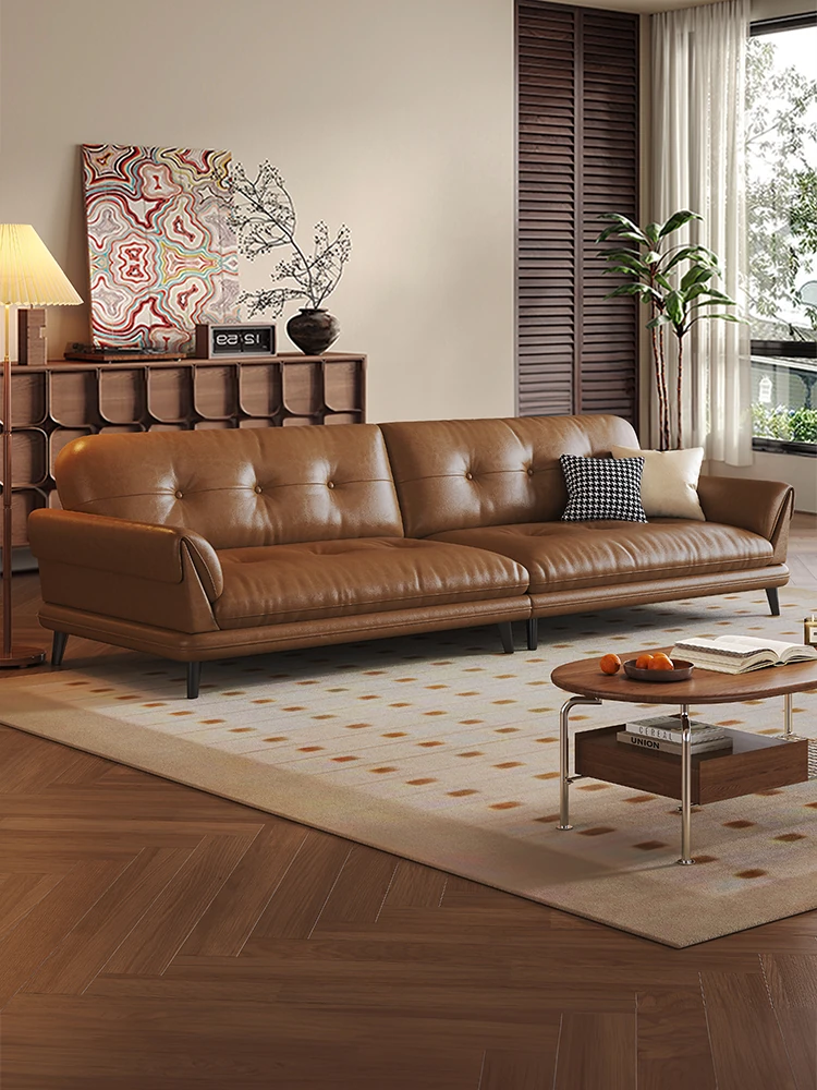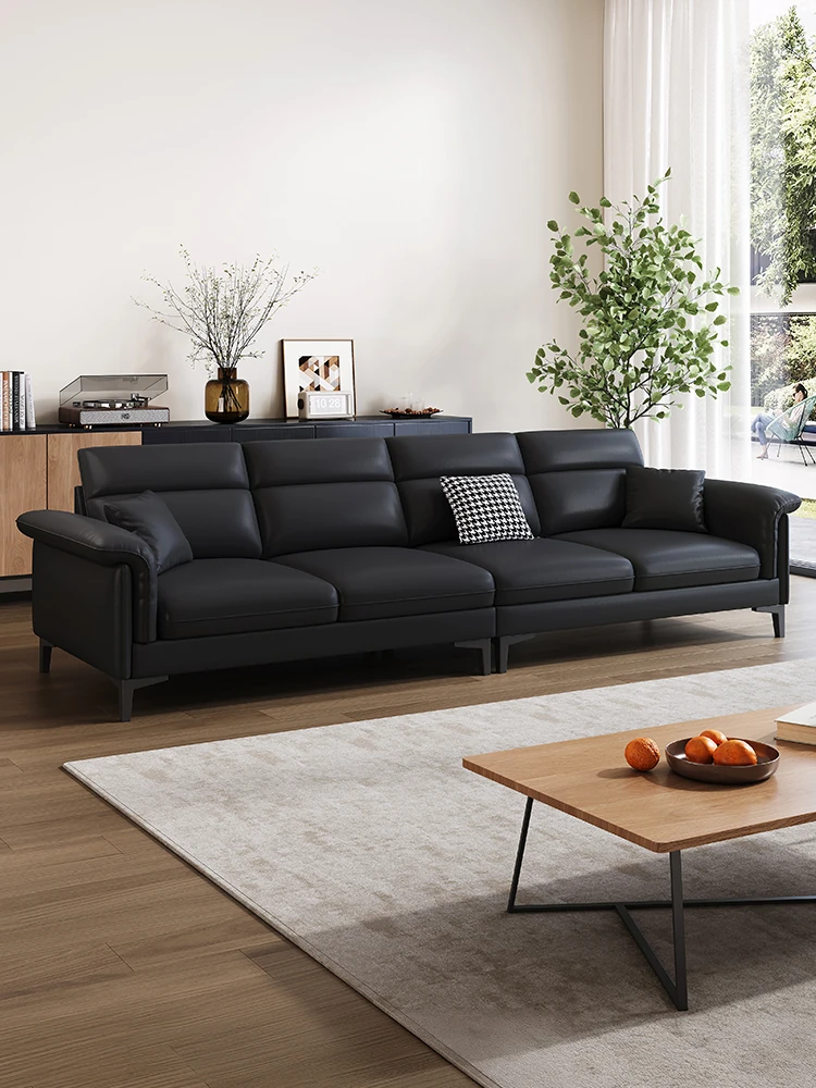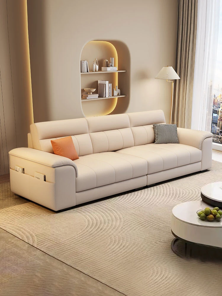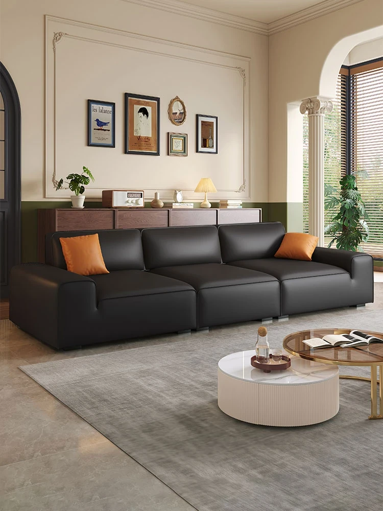 Sleek Italian Minimalist Genuine Leather Sofa – Modern Light Luxury Cowhide Cat Paw Design for Living Room, New Arrival 2024