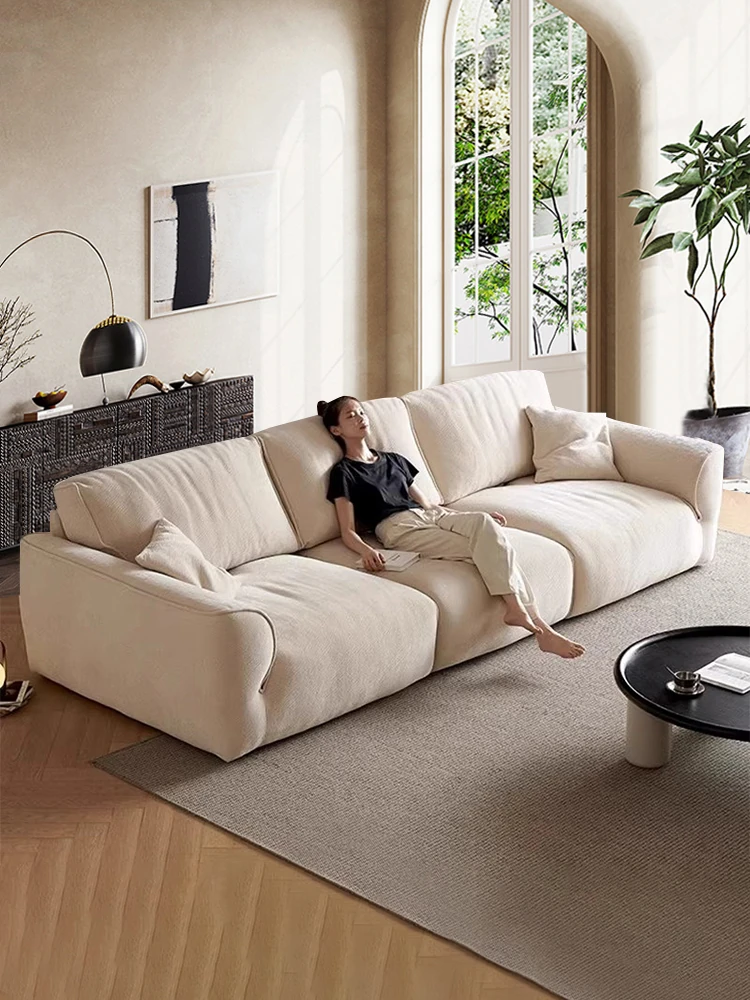 Modern Italian Chic Creamy Soft Touch Cat Scratch Resistant Fabric Sofa for Living Room - Minimalist Design, Perfect for Home Comfort