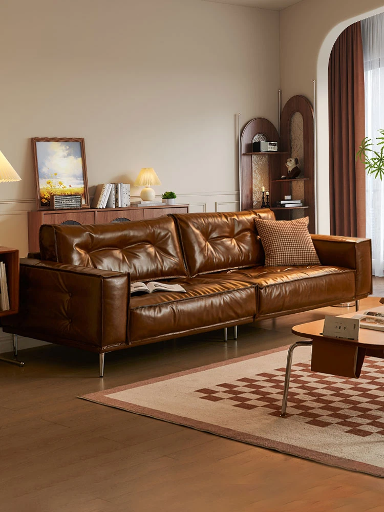 Italian Minimalist Cat Scratching Leather Sofa - Modern Simple Design for Small Living Spaces, 3-4 Seater, Real Leather, Perfect for Your Home