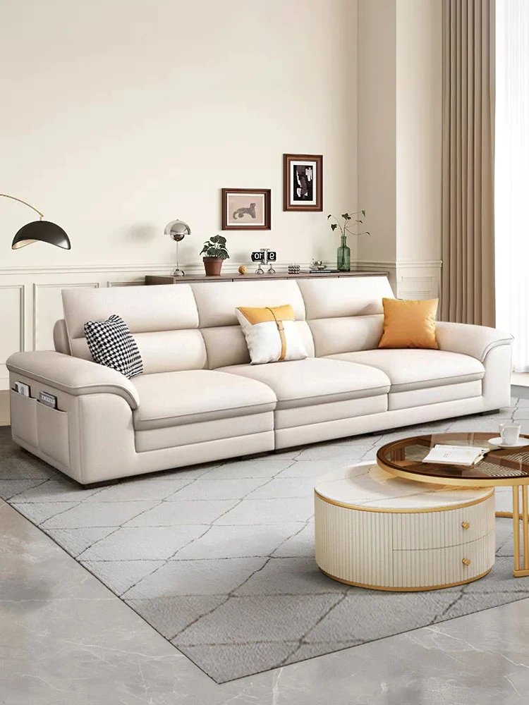 Italian Minimalist Luxury Tech Fabric Sofa for Small Spaces - Modern Straight-Line Three-Seat Couch for Living Room, Trendy Design