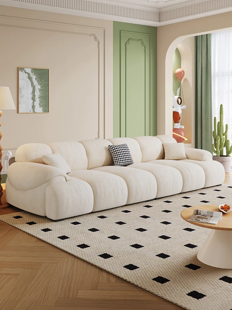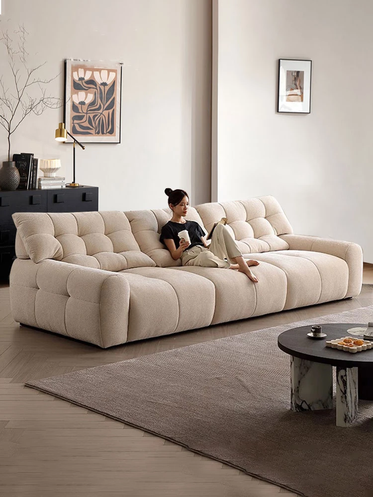 "Modern Minimalist Cream Puffle Marshmallow Fabric Sofa – Plush Cloud Design for Small Living Rooms, Perfect for Cozy Spaces"