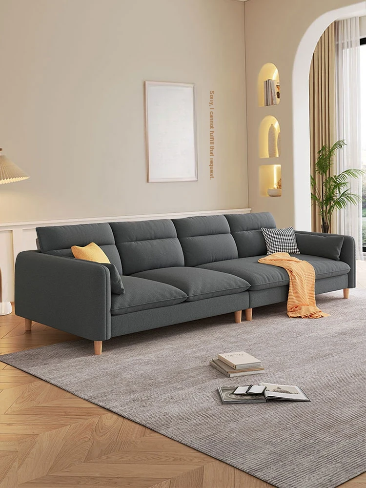 Modern Minimalist Tech Fabric Sofa for Small Living Rooms - Straight-Line Three-Seater with Chaise Lounge and Corner Combination, Latex Sofa for Stylish Comfort