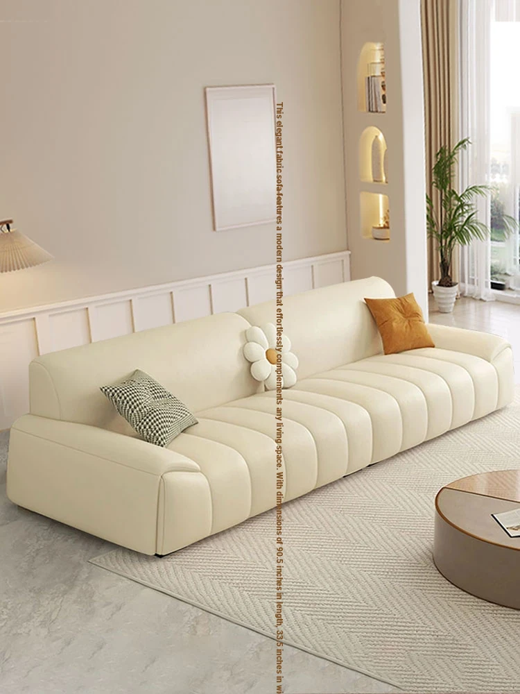 Nordic Creamy Minimalist Sofa for Small Apartments – Modern Straight-Line Design with Tech Fabric and Lamb's Wool Upholstery for Your Living Room