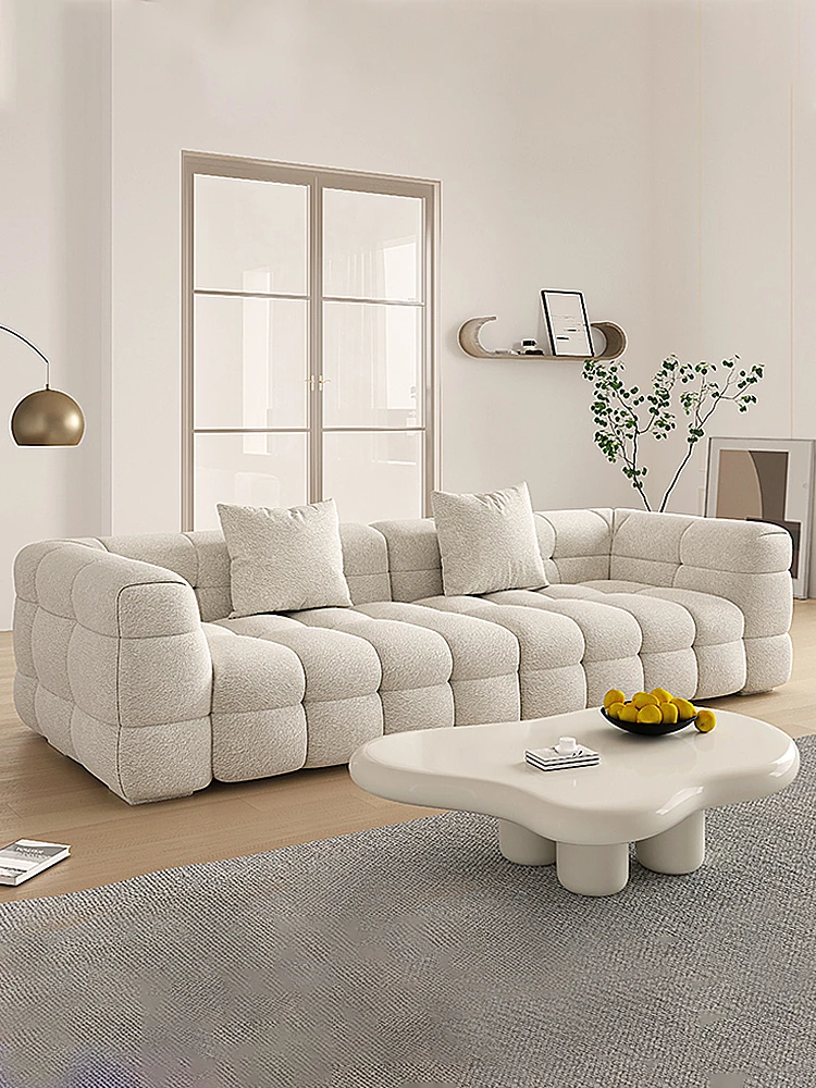 Trendy Marshmallow Sofa - Minimalist Cream-Style Upholstered Couch for Small Spaces, Luxurious and Simple Lamb Fleece Fabric, Perfect for Your Living Room.