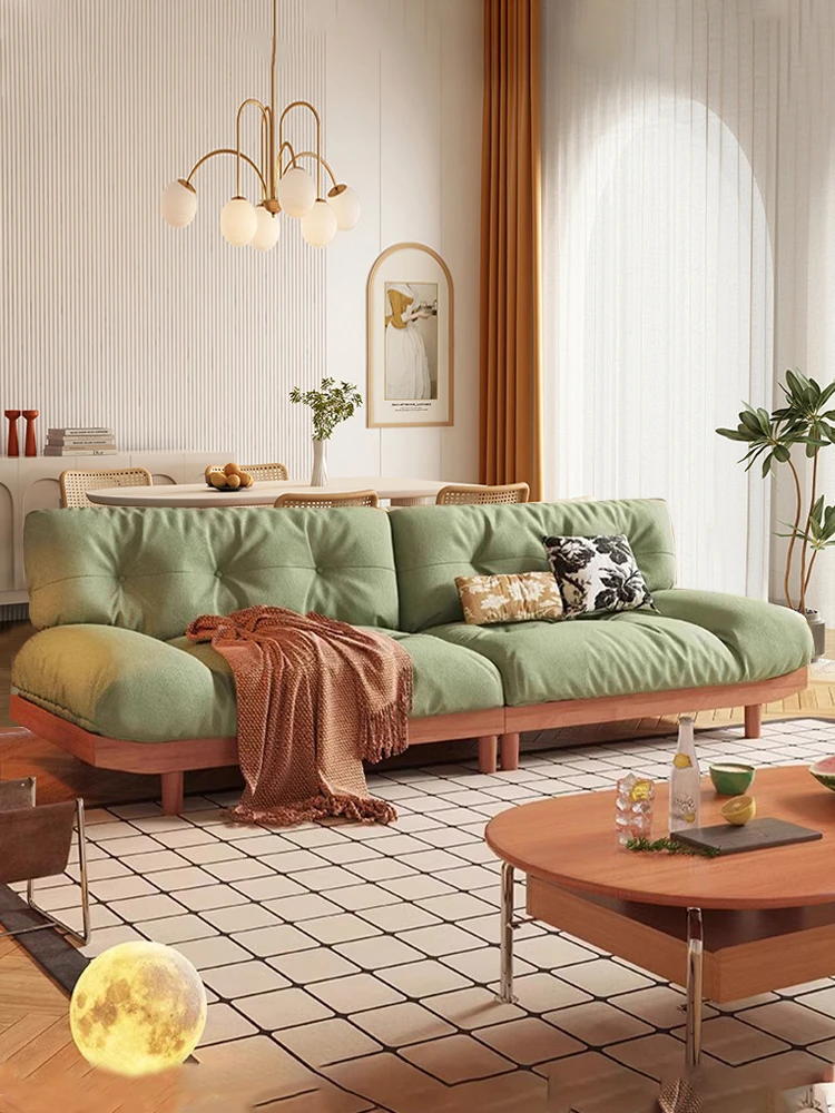 "Minimalist Japanese-Style Solid Wood Cloud Cat Paw Velvet Sofa - 3-Seater Removable Washable Fabric Couch for Small Living Rooms"