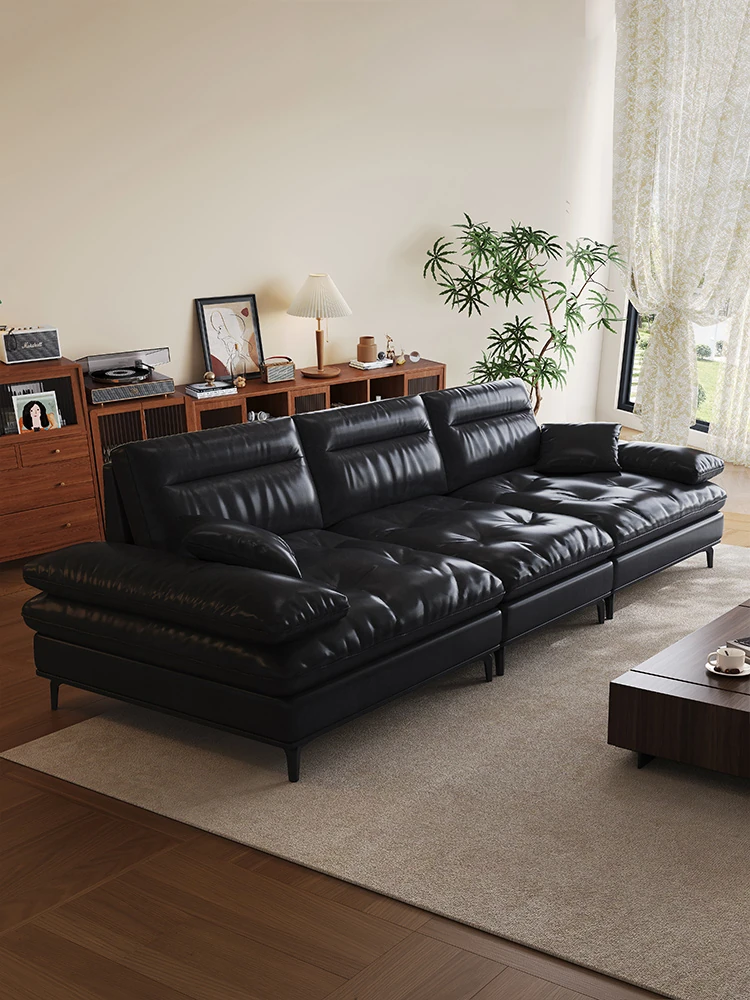 Italian Minimalist Vintage Waxed Leather Sofa - Extra Deep Seat, High Back, Black, Perfect for Home Living Rooms - Ultimate Comfort and Timeless Style