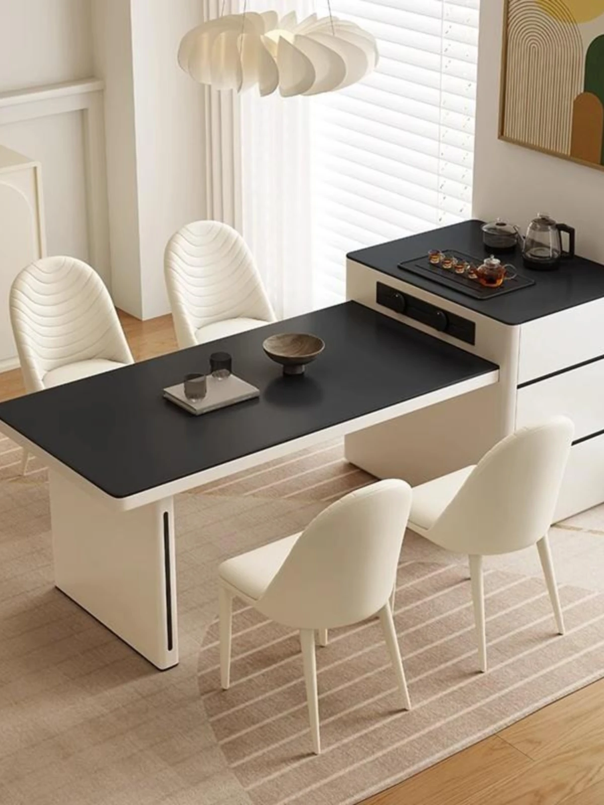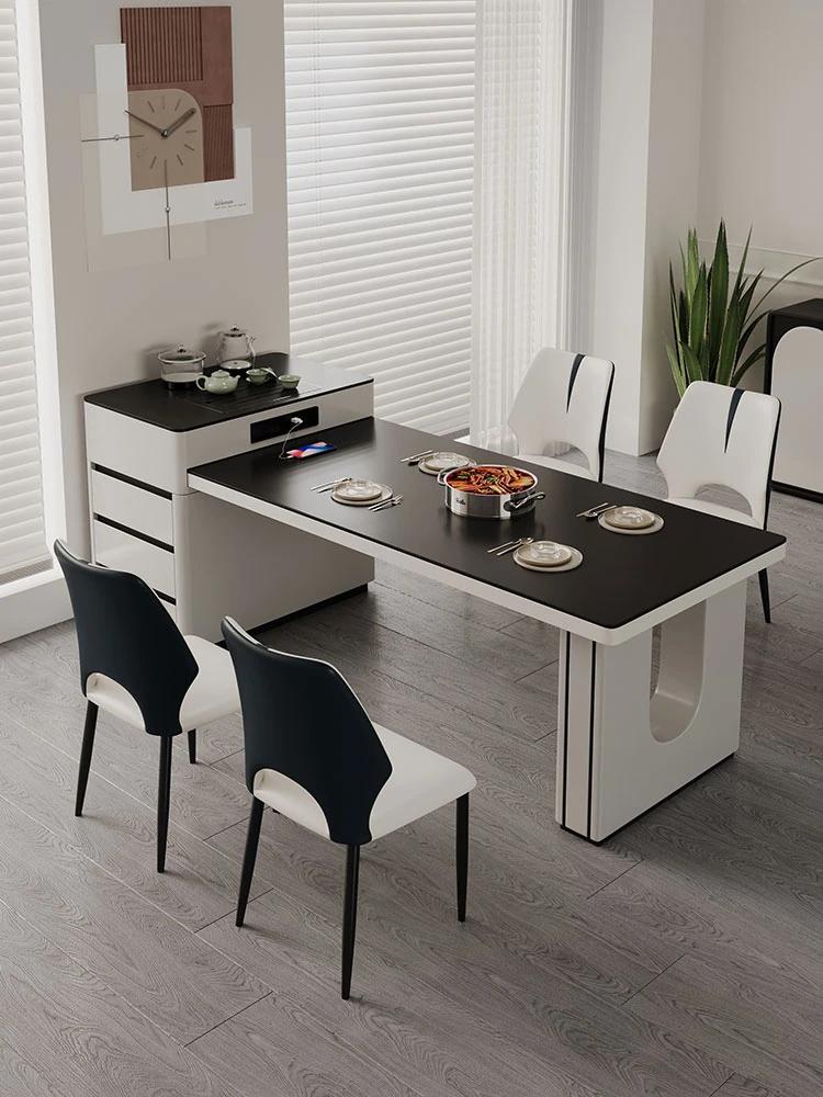 Modern Minimalist Solid Wood Dining Table and Chair Set - Luxury Expandable and Foldable Design for Small Spaces, Perfect for Home Dining.