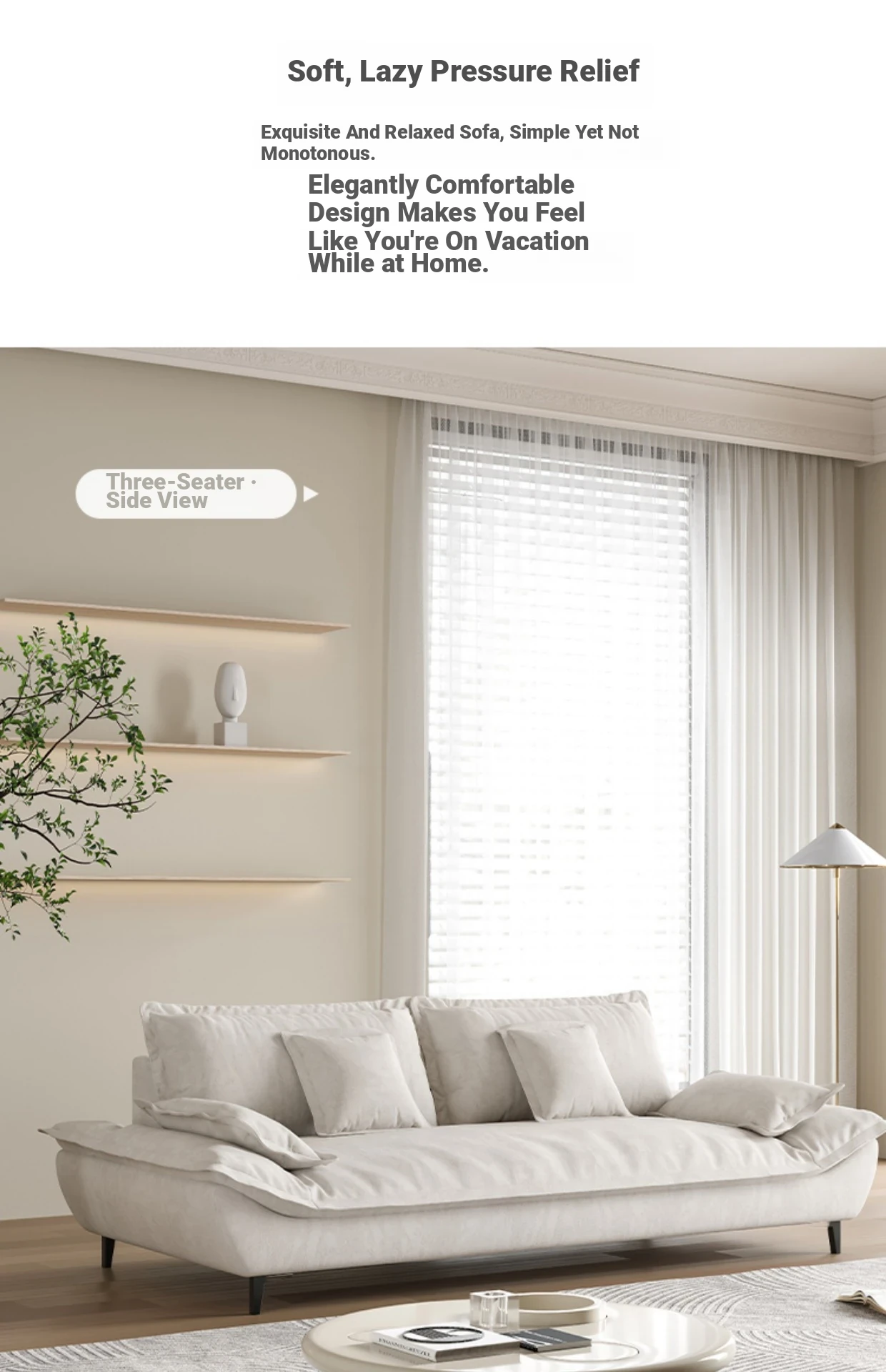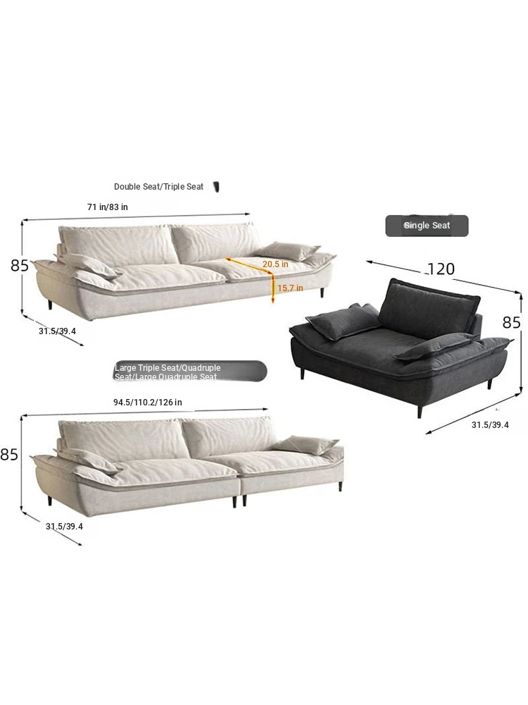Elegant Italian Minimalist Tech Fabric Sailboat Sofa - Stylish 3-Seater for Small Apartments & Living Rooms - Perfect for Modern Luxury Décor and Trending Interiors
