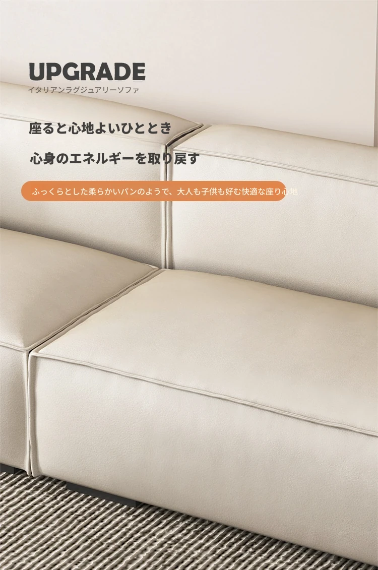 イタリアンミニマルデザインのトーフブロックソファ - コンパクトなリビングに最適!3~4人用直列配置、最新のテクニカルファブリックで作られたモダンでシンプルなスタイル。小さな空間でもおしゃれにくつろげる一品!