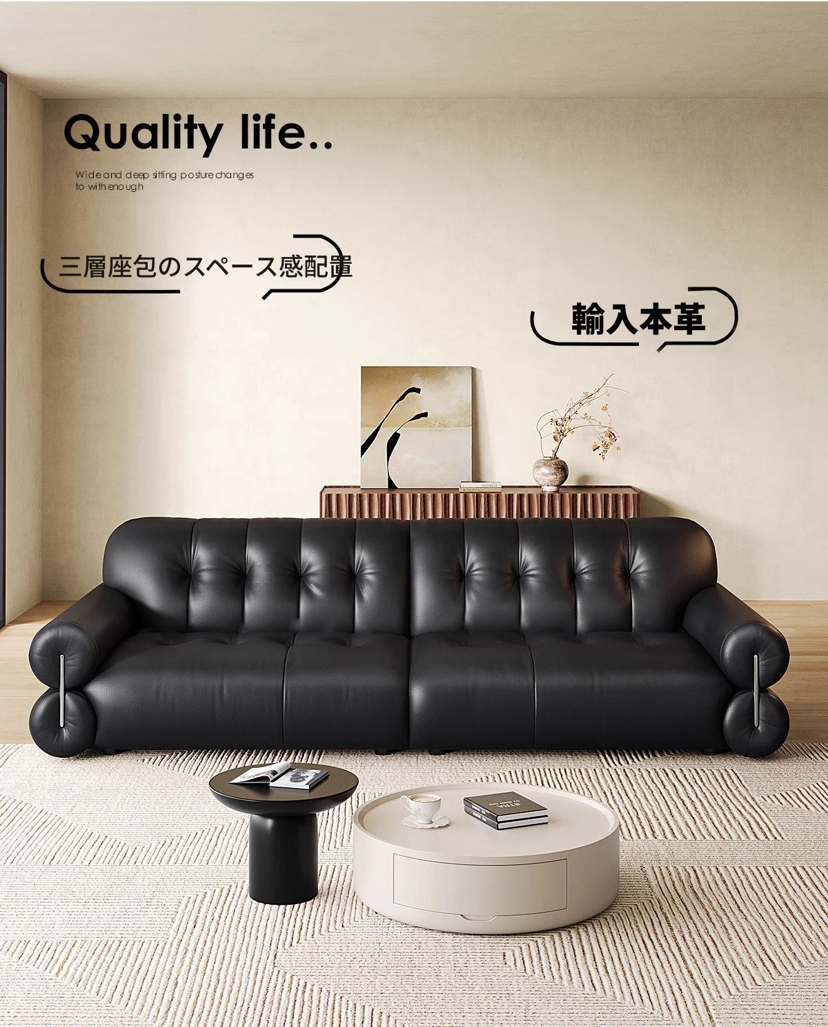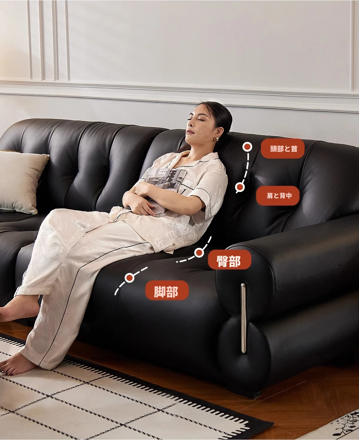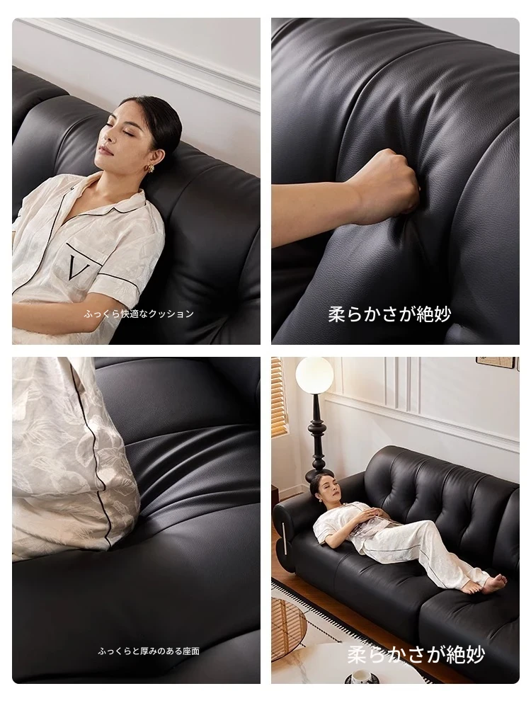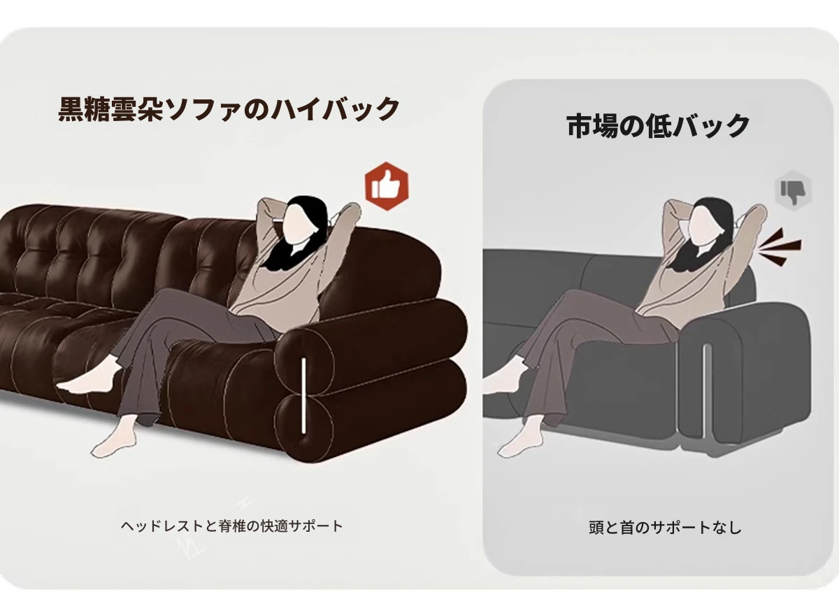 イタリアンミニマリスト ブラックシュガー クラウドソファ 小型リビング向け モダンシンプル 猫の爪痕にも強い合成皮革使用 本革仕上げのソファで、スタイリッシュな空間を演出!
