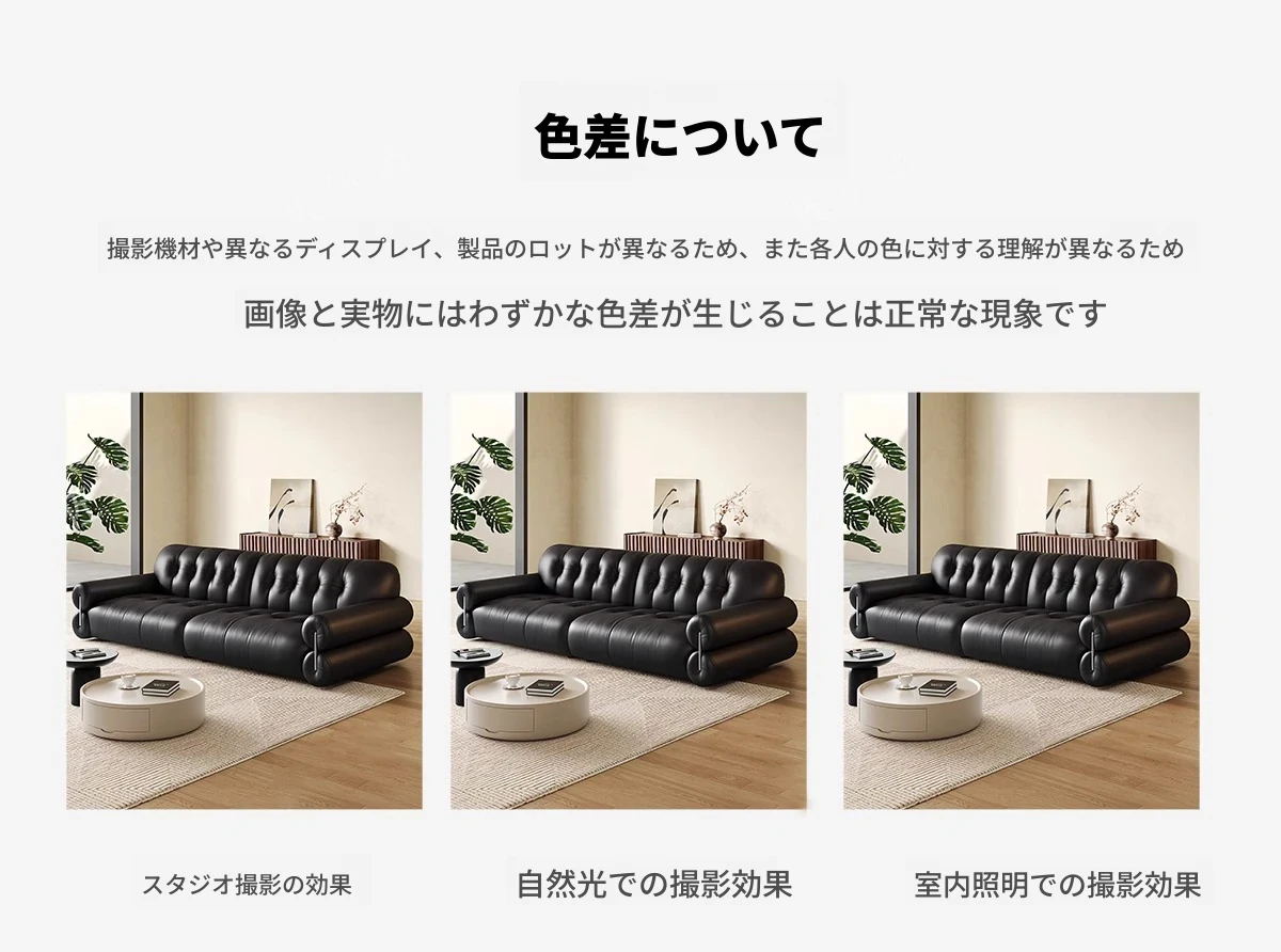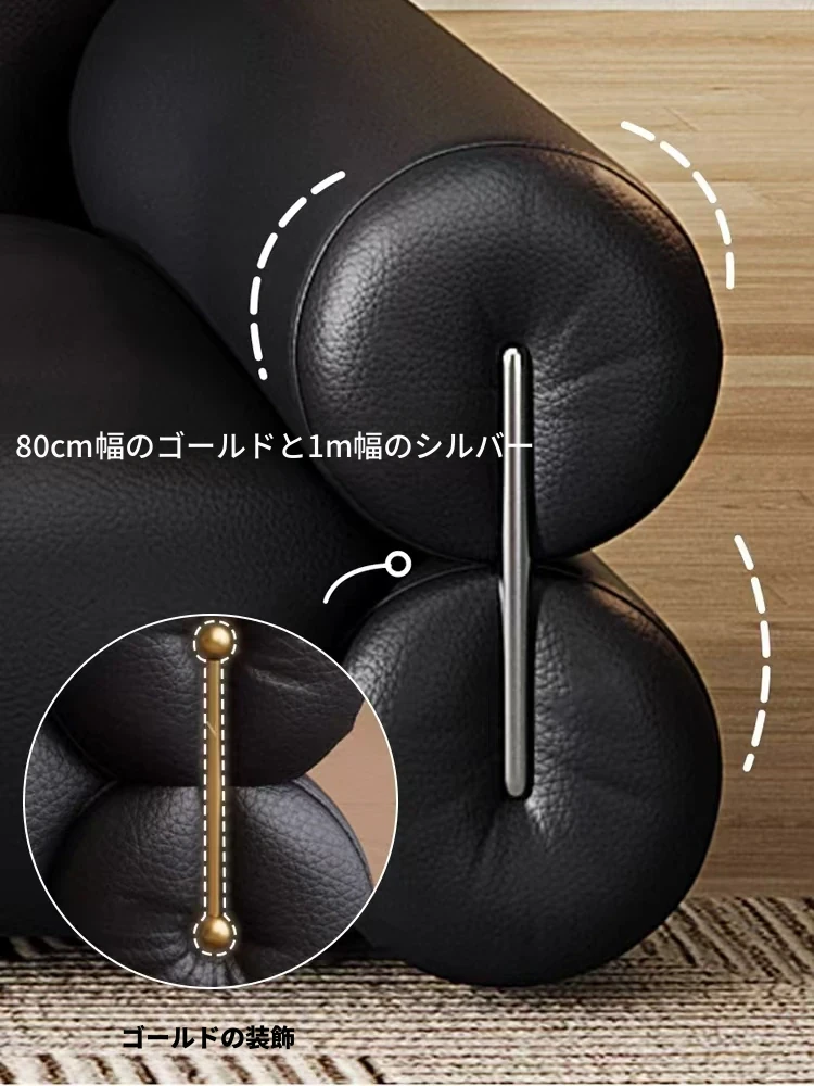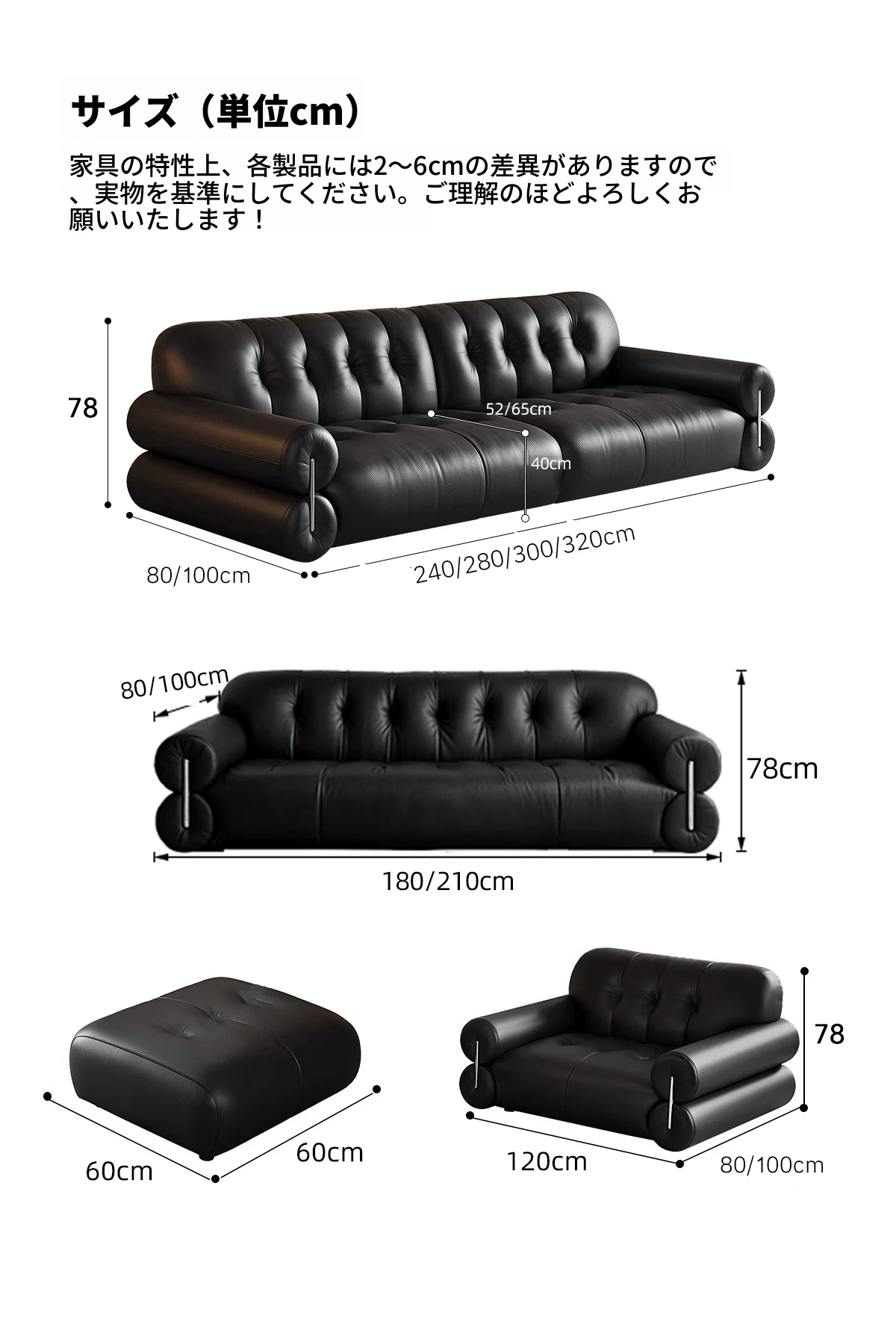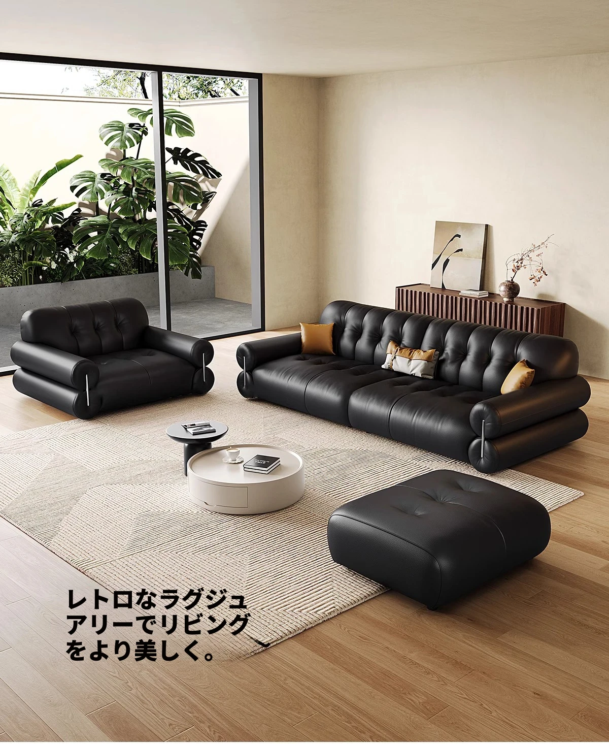 イタリアンミニマリスト ブラックシュガー クラウドソファ 小型リビング向け モダンシンプル 猫の爪痕にも強い合成皮革使用 本革仕上げのソファで、スタイリッシュな空間を演出!