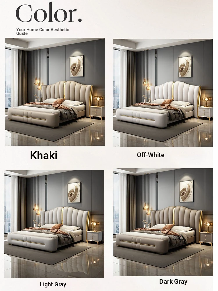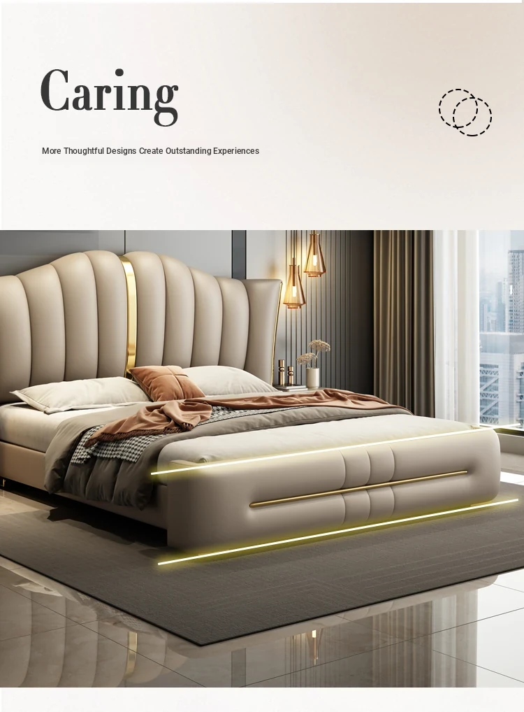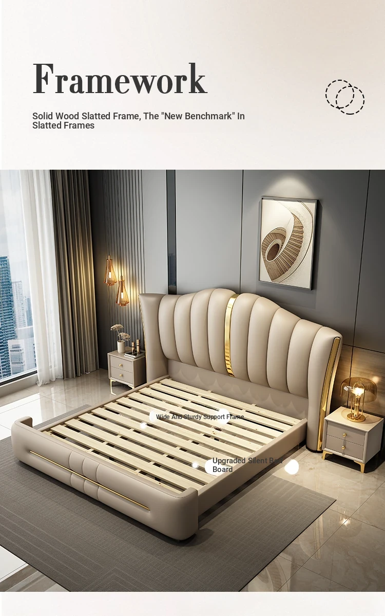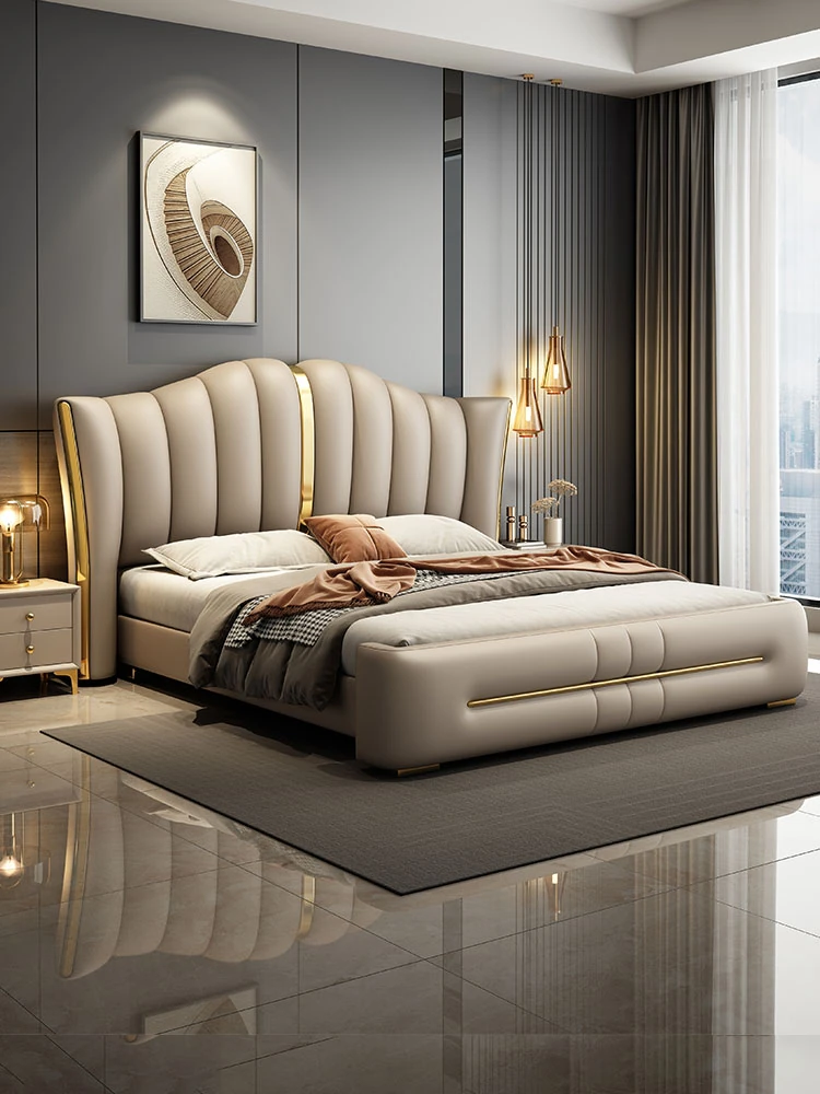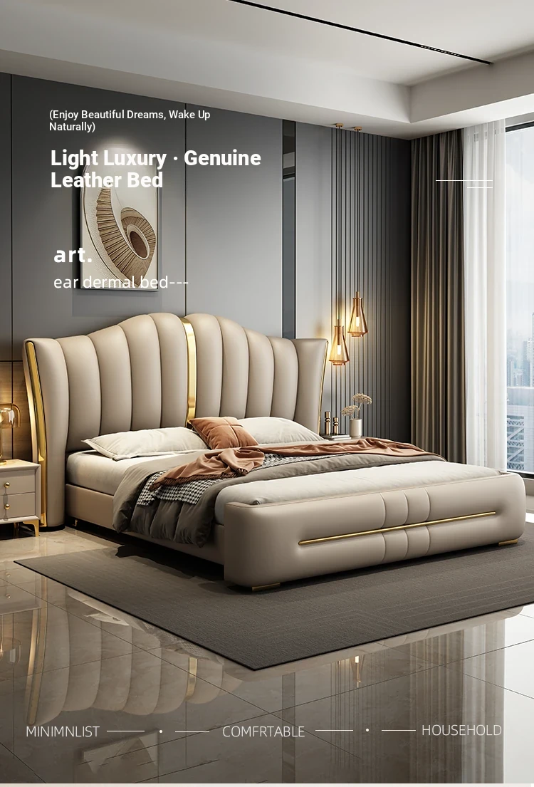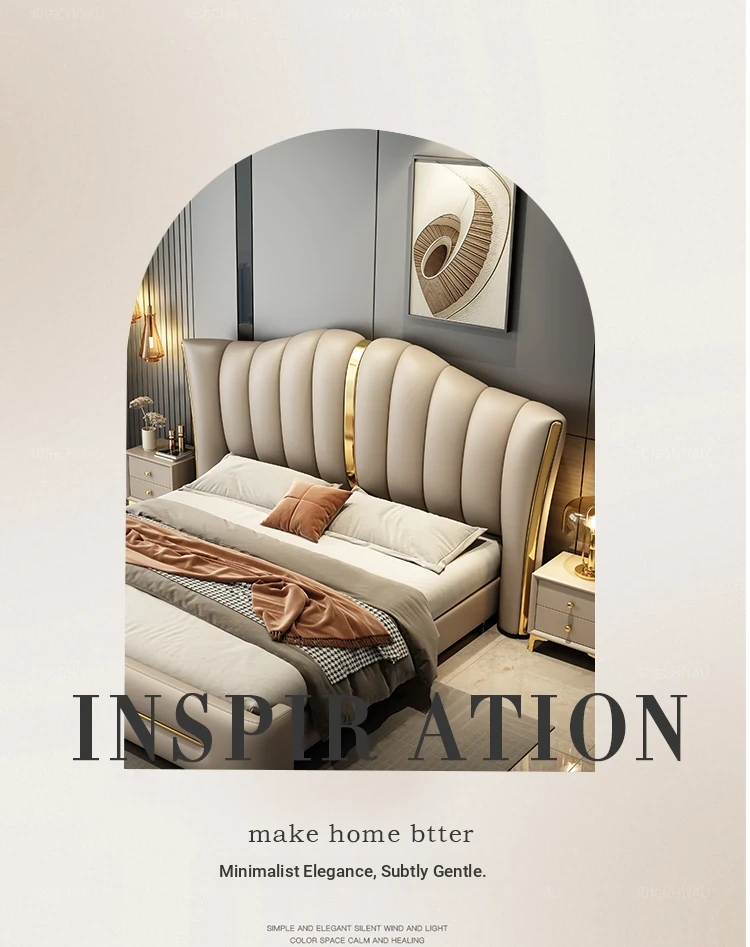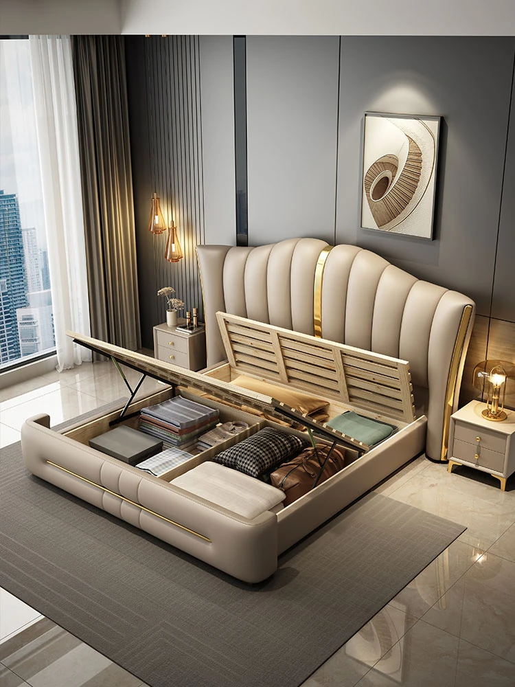 Premium Minimalist Imported Genuine Leather Bed - Elegant and Spacious King-Sized Double Bed with Storage for Modern Homes, Ideal for Master Bedrooms and Newlyweds.