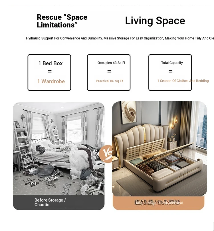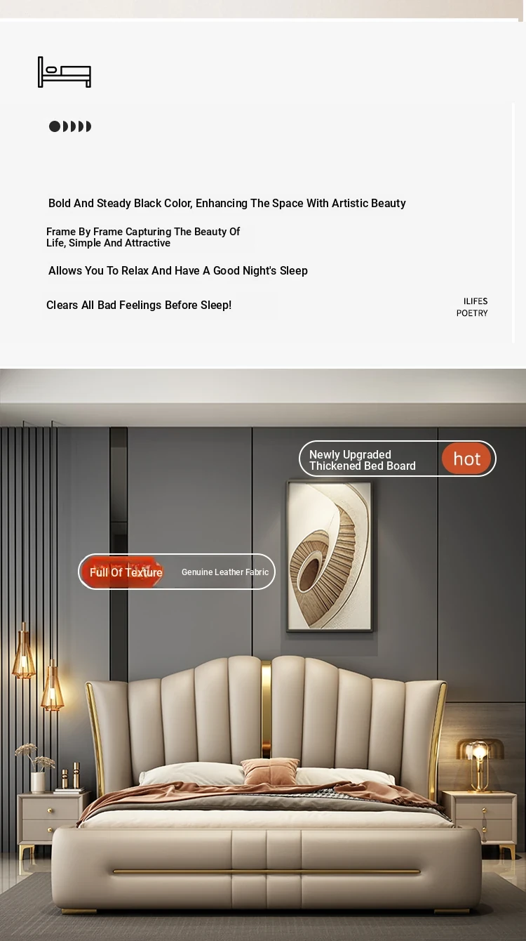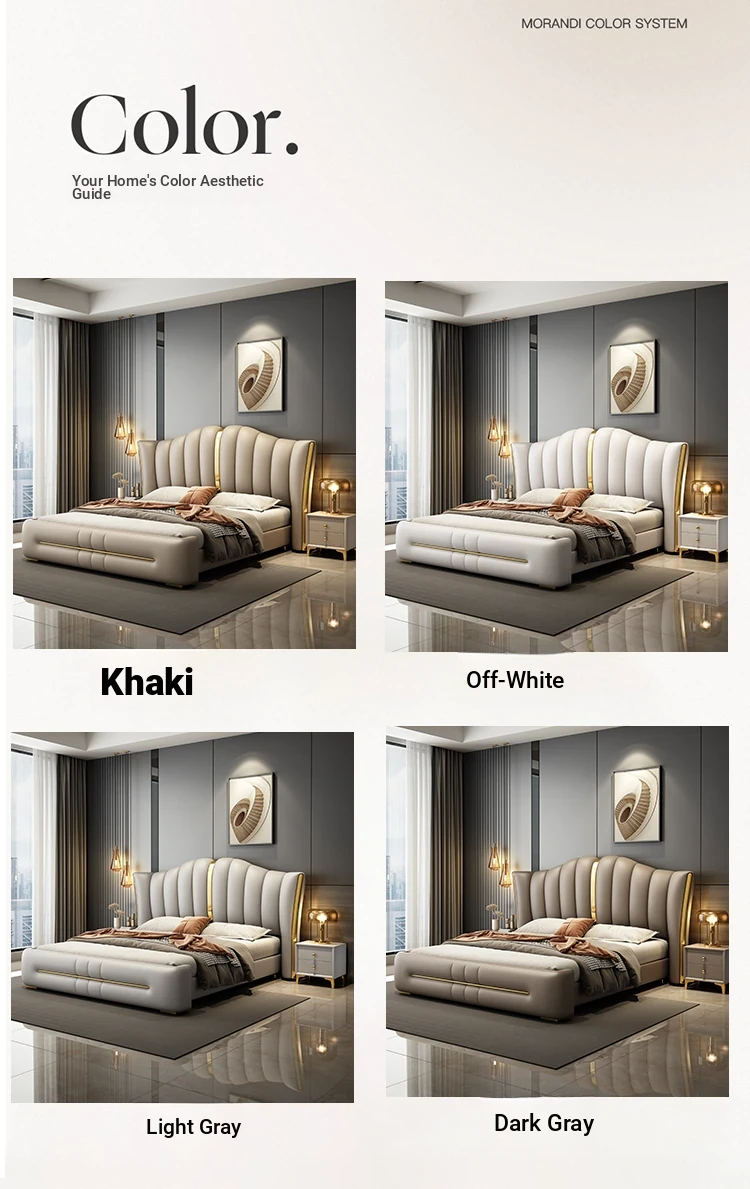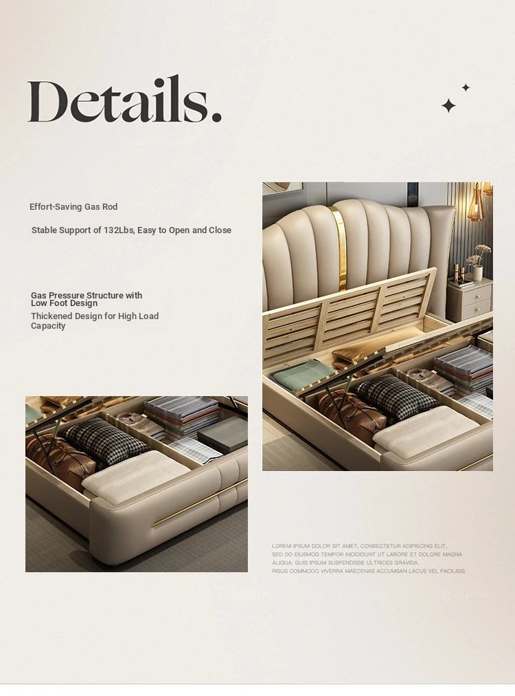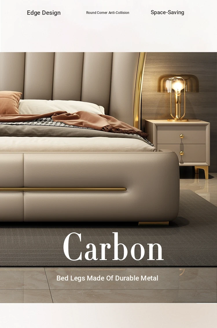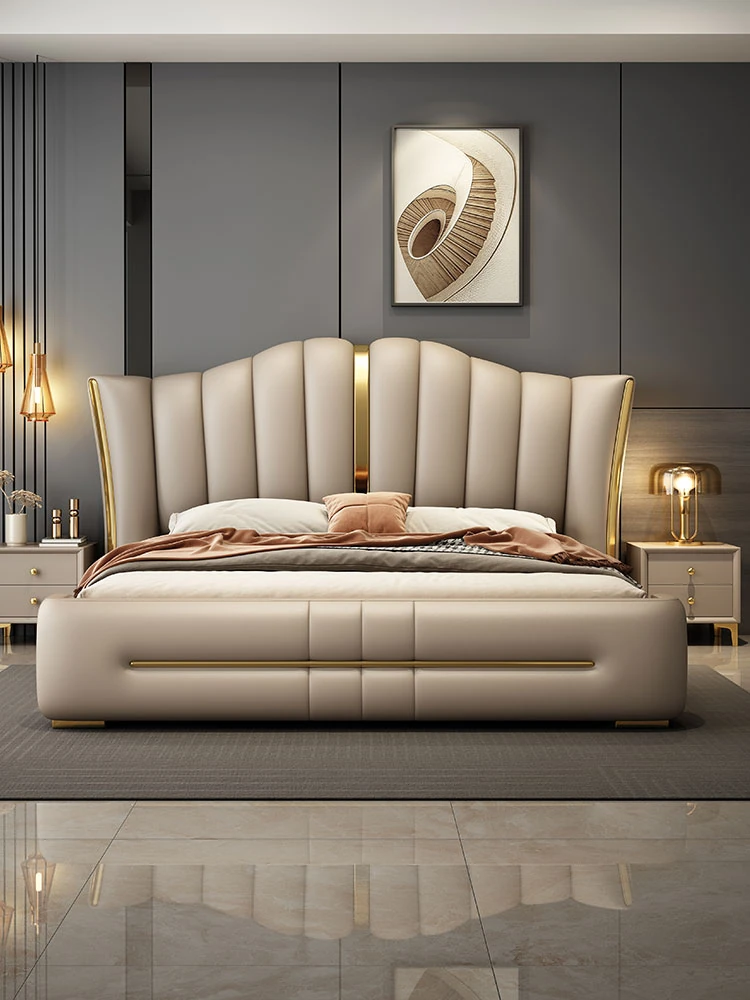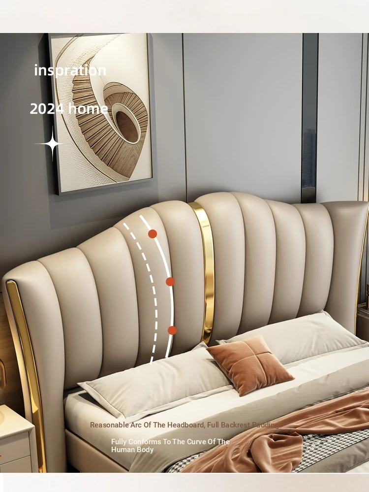 Premium Minimalist Imported Genuine Leather Bed - Elegant and Spacious King-Sized Double Bed with Storage for Modern Homes, Ideal for Master Bedrooms and Newlyweds.