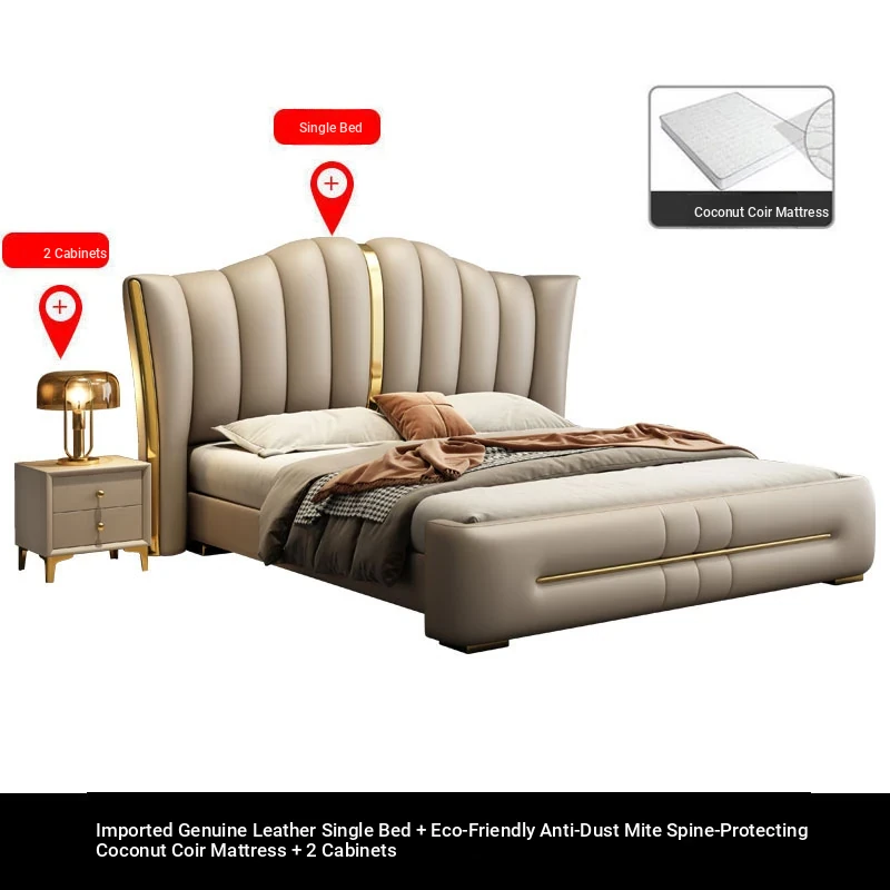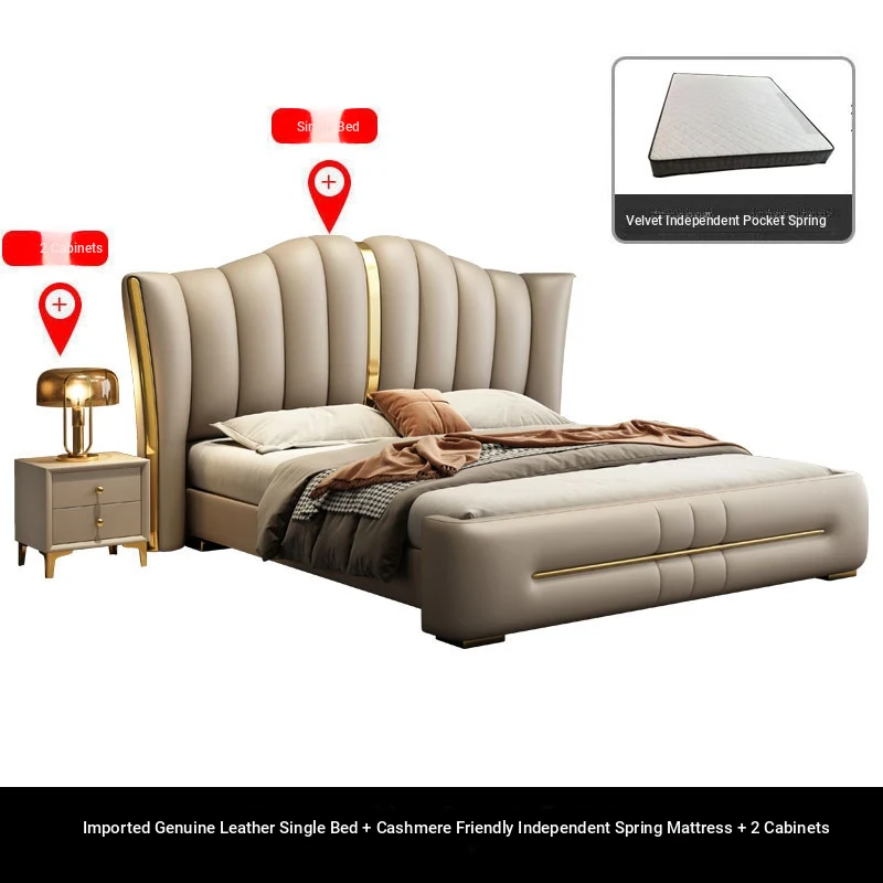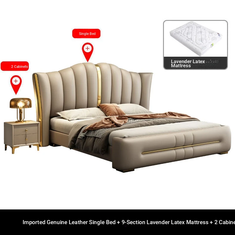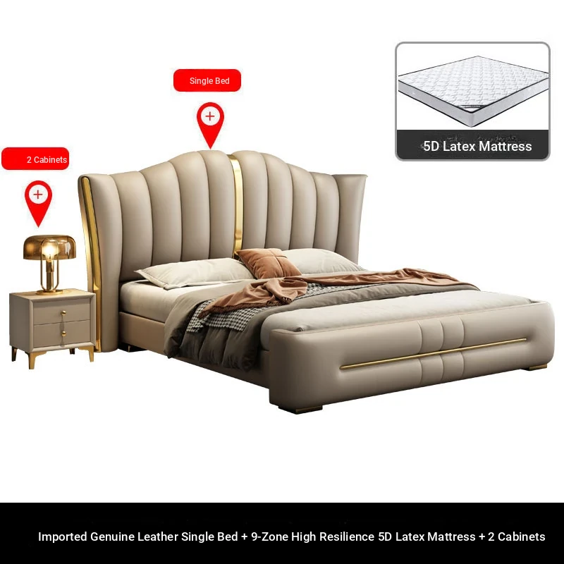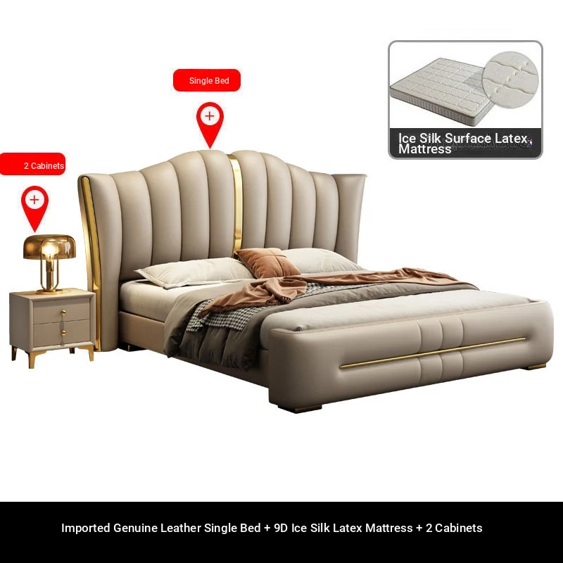 Import real cowhide single bed + 9D Ice Silk dual-purpose latex mattress +2 cabinets