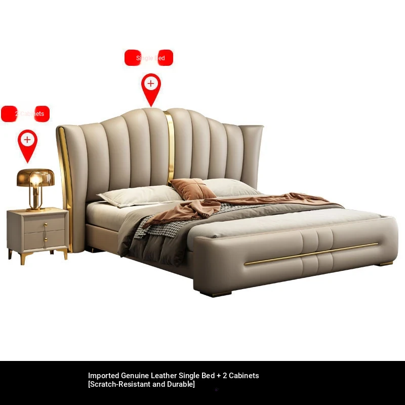 Import real cowhide single bed +2 cabinets {anti-scratch Abrasion Resistant}