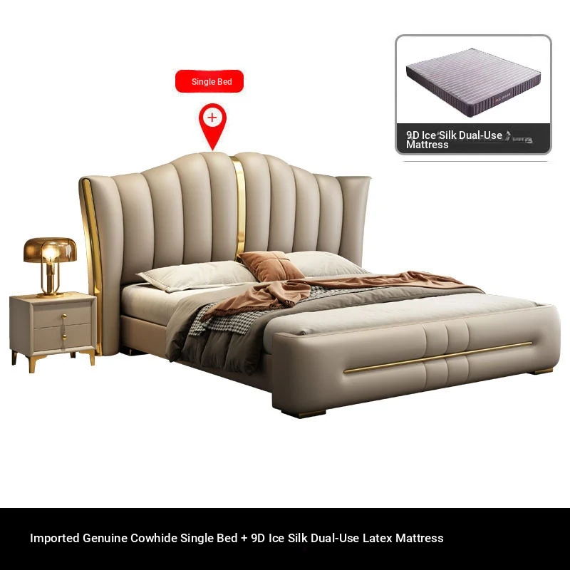Import real cowhide single bed + 9D Ice Silk latex mattress