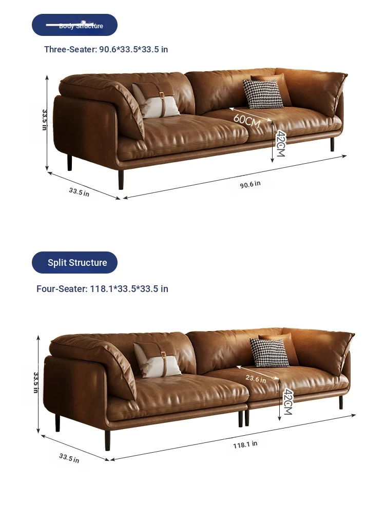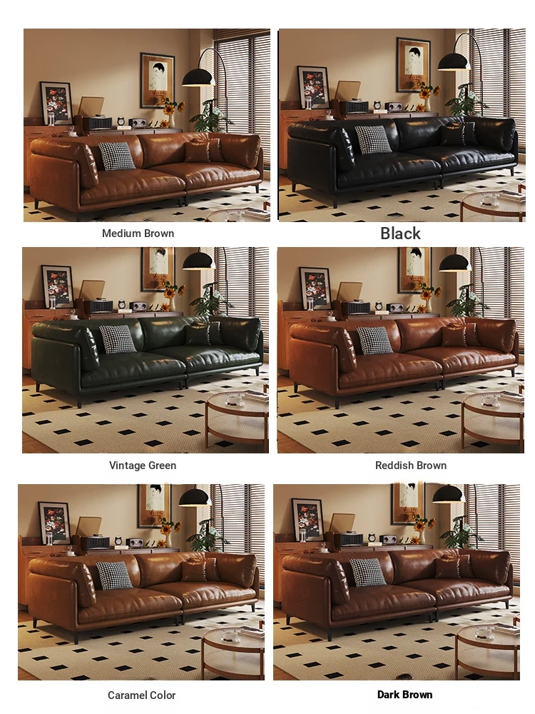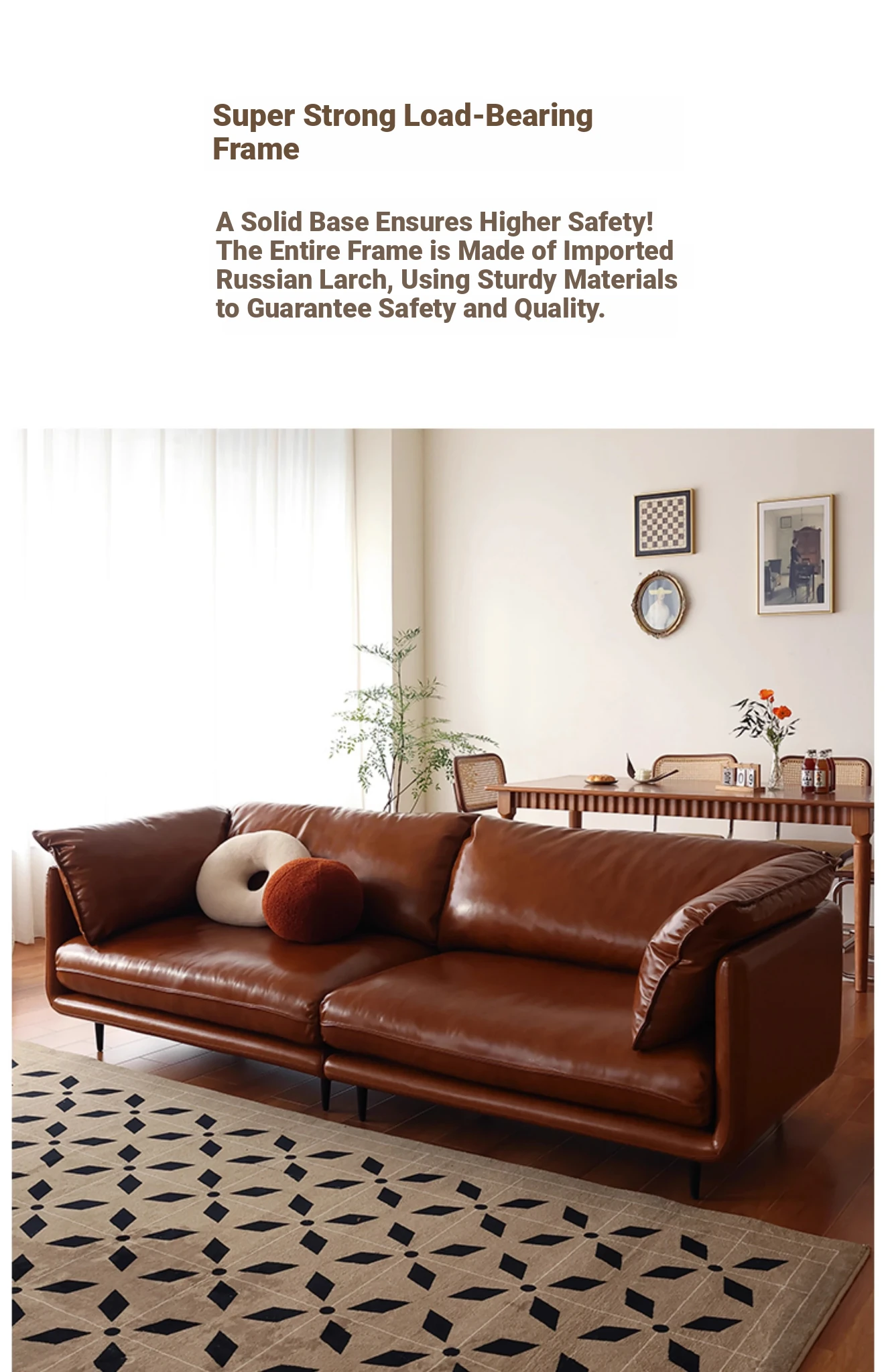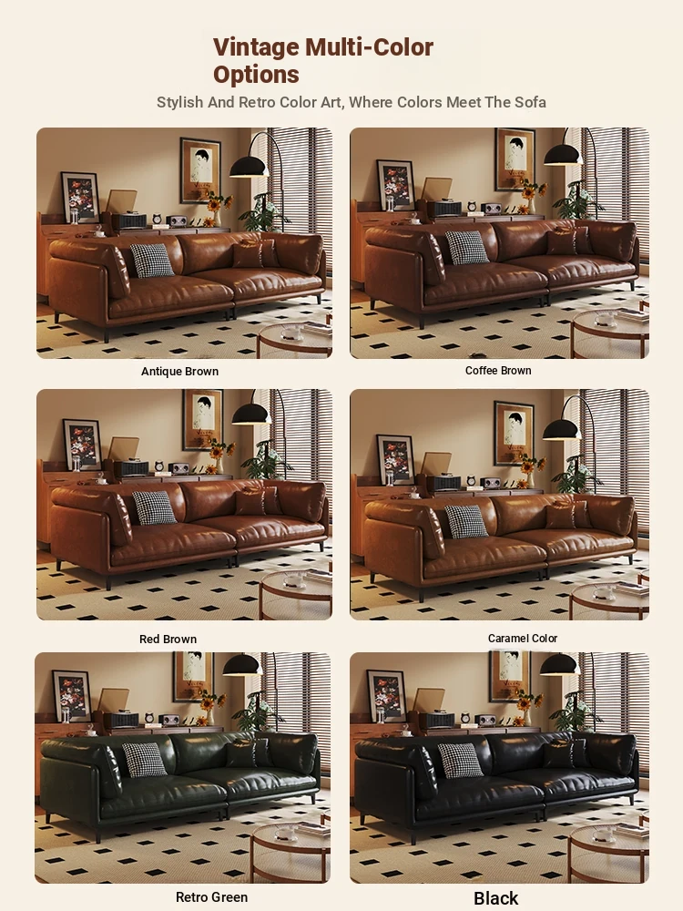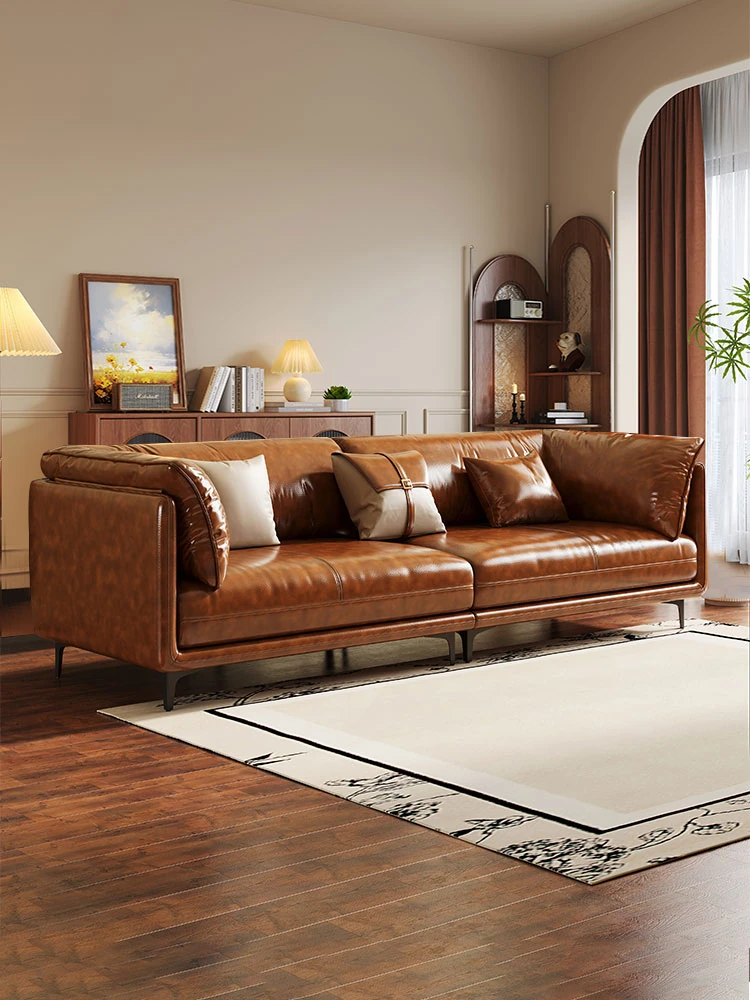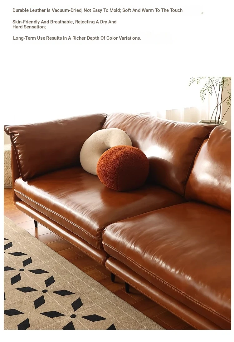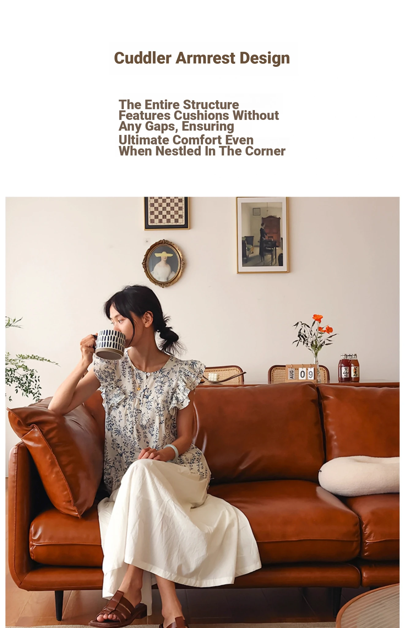 Sleek Italian Vintage Waxed Leather Sofa for Small Living Rooms - Space-Saving, All-In-One Seating for 3 to 4 People