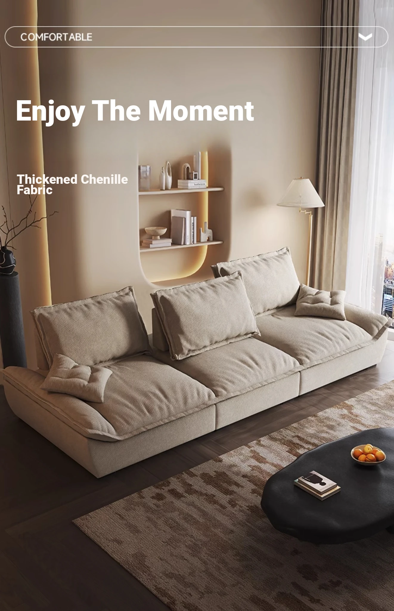 Ultra-Deep, Wide Vintage Style Chenille Fabric Sofa – Perfect for Comfort and Elegance in Your Living Space!